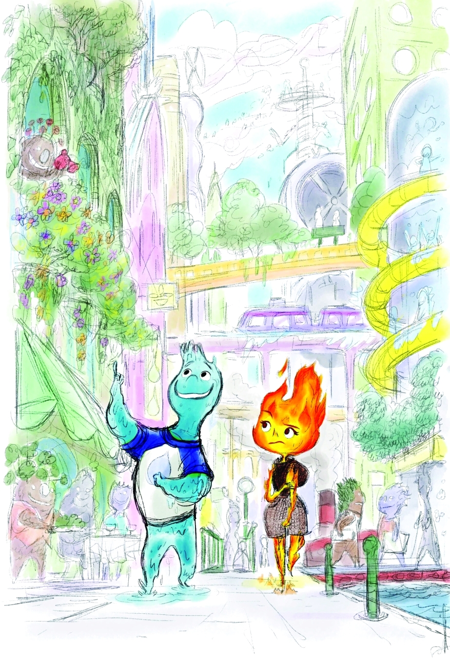 يروي الفيلم قصة كائنات من العناصر الأربعة للأرض هما إمبر ووايد اللذين يقيمان في «مدينة حيث النار والماء والأرض والهواء يعيشون معاً. وتستكشف المرأة النار والشاب المائي كم الأشياء التي تجمعهما معاً».
