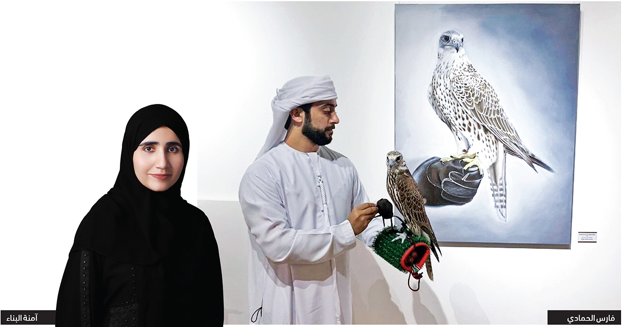 بدوره أكد الفنان فارس الحمادي أنه يحرص في أعماله على تجسيد المعالم الإماراتية بأعماله. وأوضح: «أرسم الخيول العربية والصقور والغزال، كما أبين في أعمالي جمالية المباني القديمة وما فيها من قصور مثل قصر الحصن في أبوظبي، أو قلاع أثرية وجسور، وبهذا الرسم الجمالي أعبر عن عناصر لها قيمتها عالمية مثل الخيول العربية أو غير ذلك من عناصر».