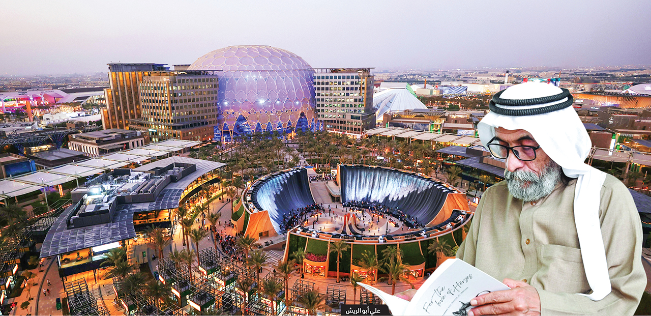 «إكسبو 2020 دبي»، بدا لأبو الريش أشبه بـ «رحلة يطوف بها أروقة الأرض، ويقطف من زهرات ثقافاتها»، وهنا يعترف بأنه وعند زيارته للمعرض الدولي لم يضع في حسبانه رؤية الباقات التي ضمتها الأجنحة.