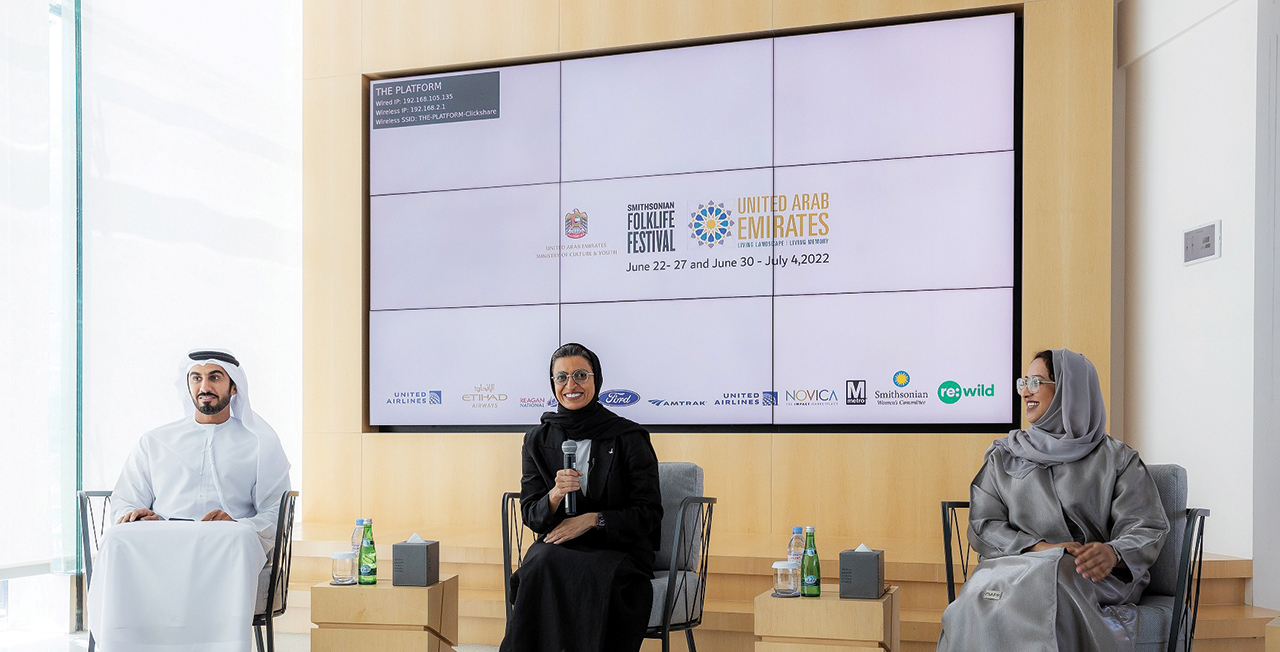 التقت معالي نورة بنت محمد الكعبي وزيرة الثقافة والشباب في مركز أبوظبي للشباب اليوم مع 80 فناناً سيمثلون الدولة في مهرجان سميثسونيان للفنون الشعبية، أحد أبرز الأحداث الفنية والثقافية على مستوى العالم والذي يتم تنظيمه سنوياً في العاصمة الأمريكية واشنطن.