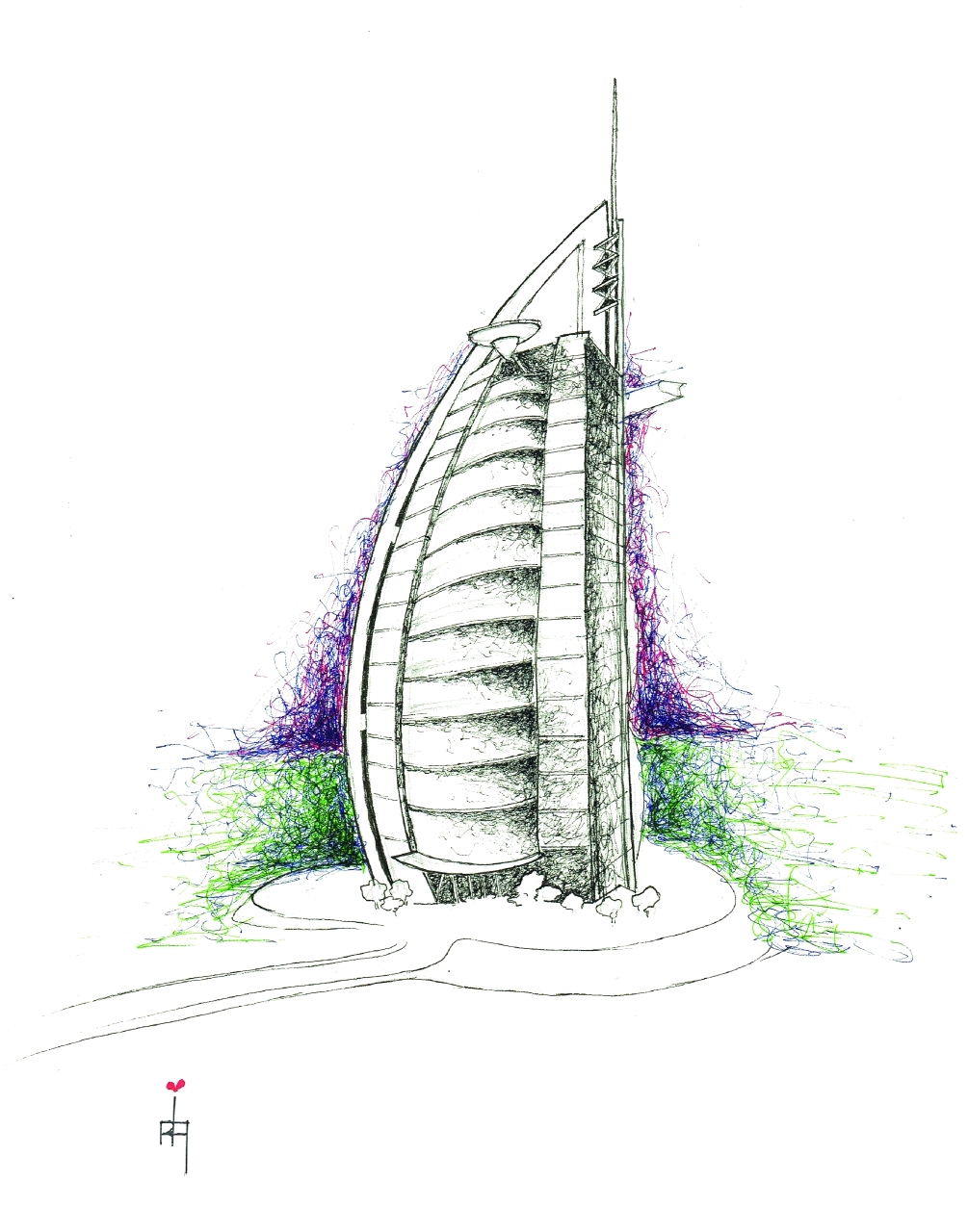 بأشكال ومقاييس مختلفة قدم روميرو لوحاته الخاصة بدبي، التي لعب فيها برج خليفة وبرج العرب وأبراج الإمارات دور البطولة.