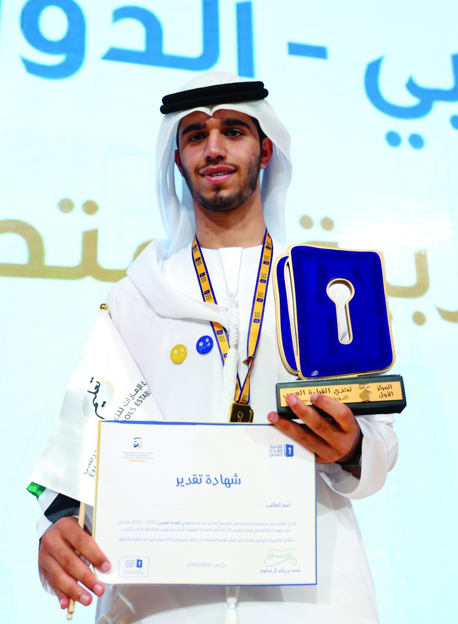 وقال: «لا مستحيل في القراءة، فأنا أشارك في التحدي منذ عامه الأول حتى وصلت إلى هذه المرحلة، وبتقديري أن التحدي لا ينتهي عند تسليم الجوائز، وإنما أهميته تكمن في قدرته على إعداد الطلبة لمواجهة الحياة»، مشيراً إلى أنه قرأ خلال هذه الدورة 300 كتاب، وأن أفضل كتاب بالنسبة له كان «قصتي – 50 قصة في خمسين عاماً» لصاحب السمو الشيخ محمد بن راشد آل مكتوم.