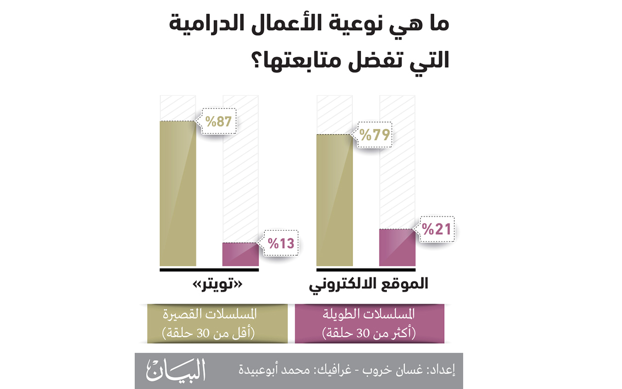بدت المسلسلات الدرامية القصيرة، التي يصل عددها إلى 15 حلقة، لوناً جديداً في الساحة الفنية العربية والعالمية، لتبدو وكأنها «محاولة تمرد» من شركات الإنتاج على قالب الـ 30 حلقة، الذي طالما فرض سطوته على الدراما لعقود طويلة، وبات «مقياساً» تفصل على طوله المسلسلات، خصوصاً تلك التي تطل في شهر رمضان، ومع انتشار «موضة» المسلسلات القصيرة، بدا الجمهور مناصراً لها ضد نظيرتها الطويلة، وهو ما أفضت إليه نتائج استطلاع «البيان» الأسبوعي على موقع الصحيفة الإلكتروني، حيث أكد 79% تفضيله للمسلسلات القصيرة، بينما فضل 21% من القراء المسلسلات الطويلة. نتائج الاستطلاع على حساب «البيان» الرسمي على «تويتر»، لم تكن بعيدة عن نظيرتها في الموقع، حيث مالت 87% من الأصوات المشاركة إلى تفضيل المسلسلات القصيرة، في حين ذهبت 13% من الأصوات إلى المسلسلات الطويلة.