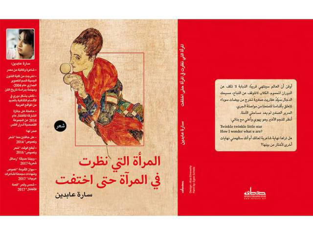 يذكر أن سارة عابدين شاعرة وفنانة تشكيلية مصرية، صدر لها بالإضافة لديوان (المرأة التي نظرت في المرآة حتى اختفت / 2019) أربعة دواوين هي: «على حافتين»، و«ابتلع الوقت»، و«وبيننا حديقة»، و«ديوان الأمومة» والأخير نصوص وشهادات مجمعة لشاعرات عربيات. حصلت سارة عام 2014 على جائزة الشارقة لأدب الأطفال عن مجموعتها القصصية «أسرار القمر».