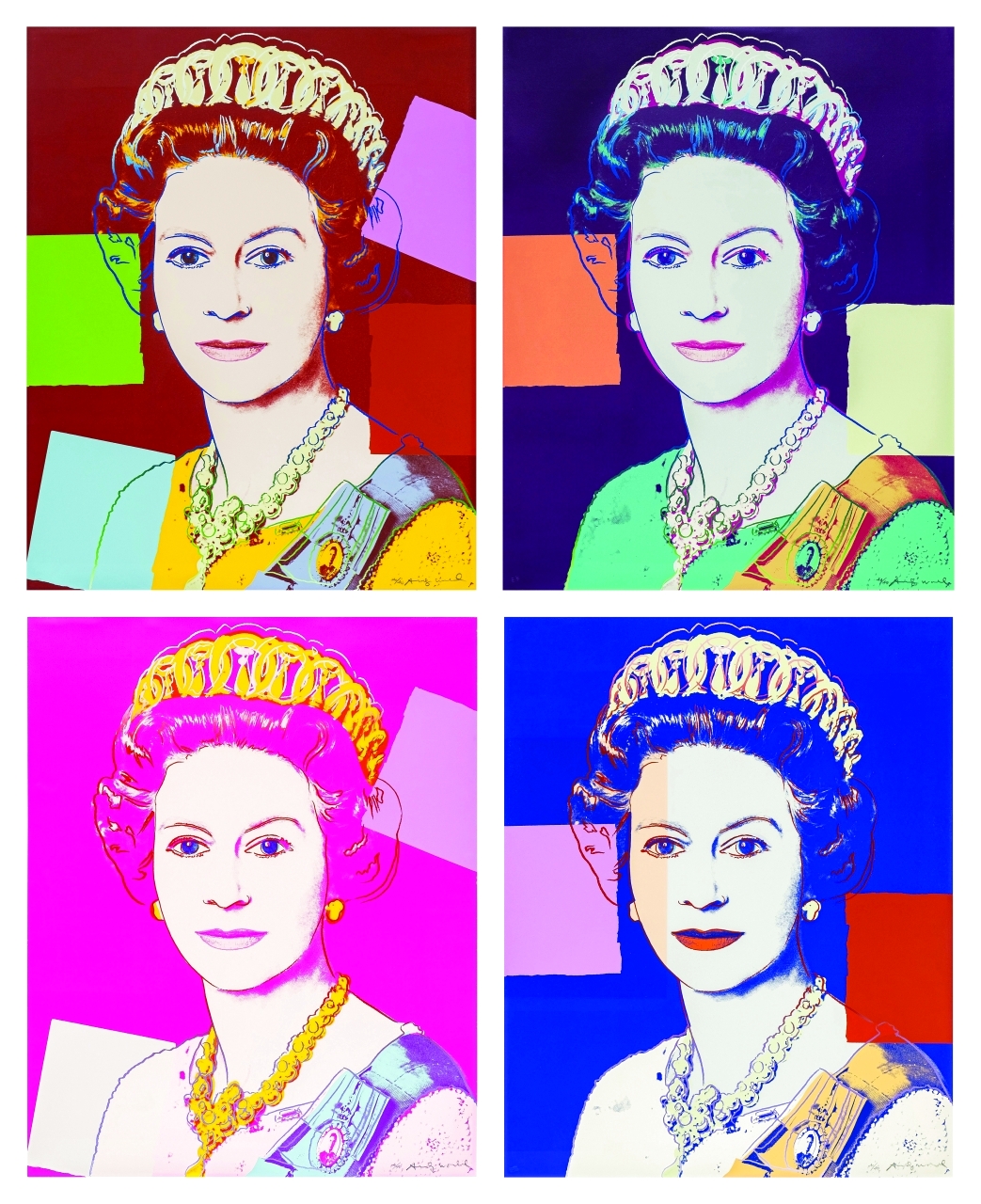 وتشكل هذه المطبوعات جزءاً من سلسلة بعنوان «Reigning Queen» «عهد الملكات»، وهي جامعة للعديد من أعمال وارهول التي تصور موضوعات مثل المشاهير، البورتريه والديكور. وقد تم عرضها في المعرض الوطني للصور في لندن، وكذلك في قلعة وندسور.