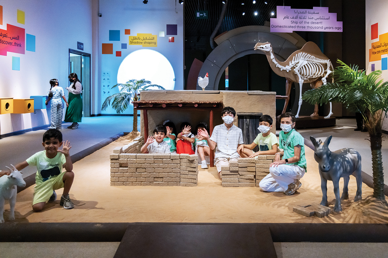 وتحفز القاعة الأطفال نحو استخدام طاقاتهم الفكرية والعملية، لتنفيذ الأنشطة والاستفادة منها، حيث تستعرض مجسماً لجمل بحجمه الطبيعي، ليتعرف «الصغار» إلى قدرات هذا الحيوان، الذي نسج إنسان الشارقة علاقته به منذ أكثر من ثلاثة آلاف عام، كما يمكنهم التعرف إلى قدرة الجمل على عبور الرمال في شبه الجزيرة العربية، ونقل أهم السلع والبضائع الرائجة آنذاك، كالبخور والتوابل والمنتجات العطرية إلى مراكز التجارة في مويلح ومليحة، فضلاً عن الاستفادة من وبره في صنع الخيام والبسط.