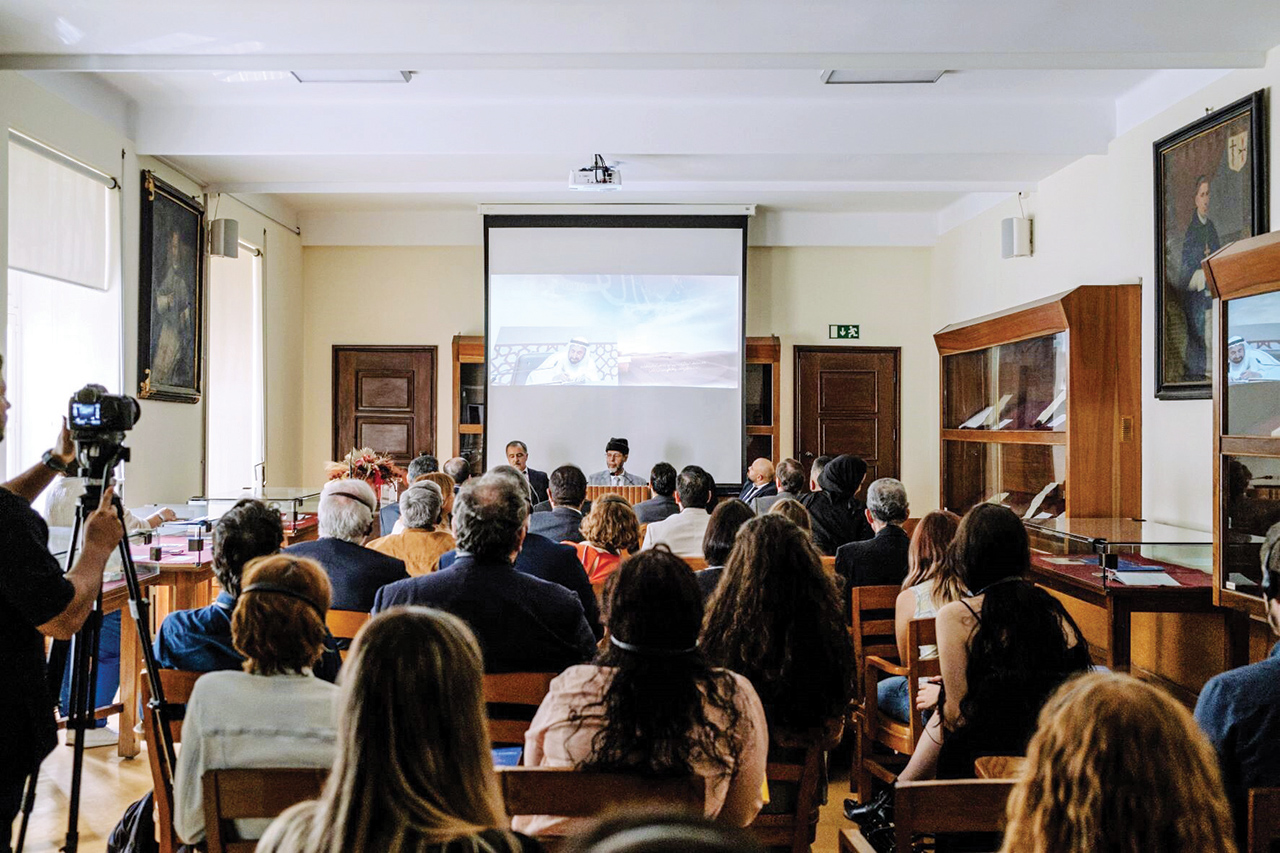 تحدث في الجلسة كل من الدكتور امحمد صافي المستغانمي الأمين العام لـ«مجمع اللغة العربية بالشارقة» والدكتور عبد الفتاح الحجمري مسؤول مكتب تنسيق التعريب بالرباط اللذين أكدا الدور الرائد لصاحب السمو الشيخ الدكتور سلطان بن محمد القاسمي عضو المجلس الأعلى حاكم الشارقة، في دعم علاقات التواصل الثقافي بين إمارة الشارقة والمراكز الأكاديمية والثقافية العالمية والتي تعد جامعة كويمبرا من أبرزها.
