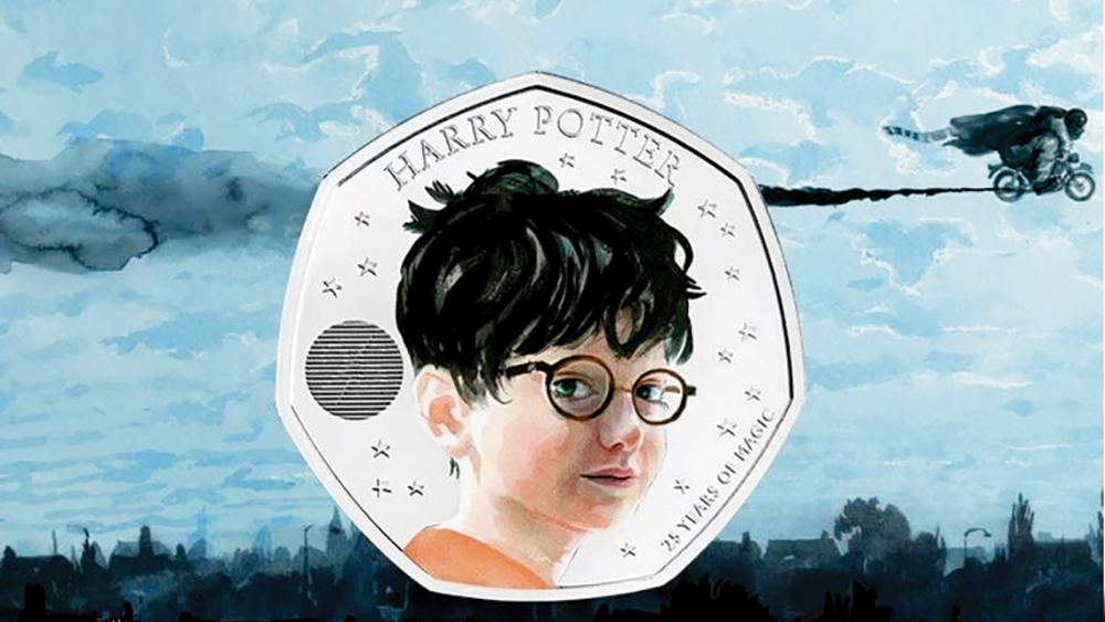 أعلنت هيئة سك العملة الملكية البريطانية أن الشخصية الأكثر شهرة في عالم الأطفال هاري بوتر، بطل السلسلة الروائية للكاتبة جاي كاي رولينغ، ستظهر على سلسلة عملات معدنية تذكارية في المملكة المتحدة، منها قطع من فئة 50 بنساً، إلى جانب عملات أخرى ستوضع عليها صورتا الملكة إليزابيث والملك تشارلز.