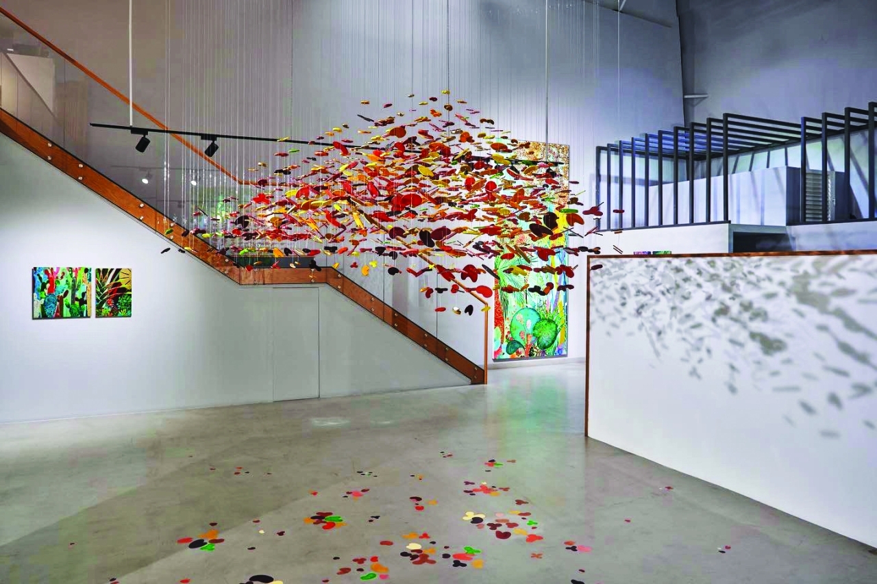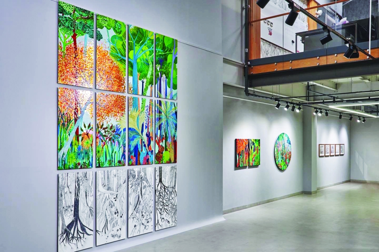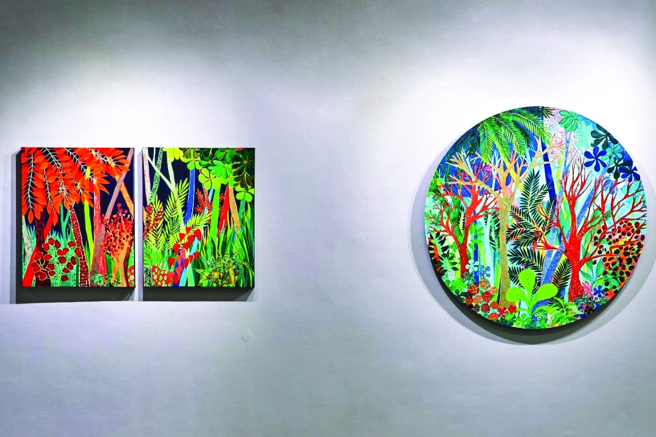 وتحدثت الفنانة بينيديكت جيمونيه لـ«البيان» عن معرضها، الذي سيستمر حتى 18 فبراير المقبل، ويتضمن أعمالاً إبداعية متنوعة الأفكار وتزهو بالألوان، وقالت: سُمي المعرض «بحثاً عن حدائق عدن»، لأنه يمثل رحلة البحث عن ملاذ، حيث يمكنني أن أملأ طاقتي من جديد وأستعيد توازني وراحة بالي، وهذا المكان مستوحى من الطبيعة، لهذا السبب الأعمال تصف بيئات نباتية غنية بالألوان متكونة من ذكريات خالدة، لا تلتزم بقواعد الزمان والمكان.