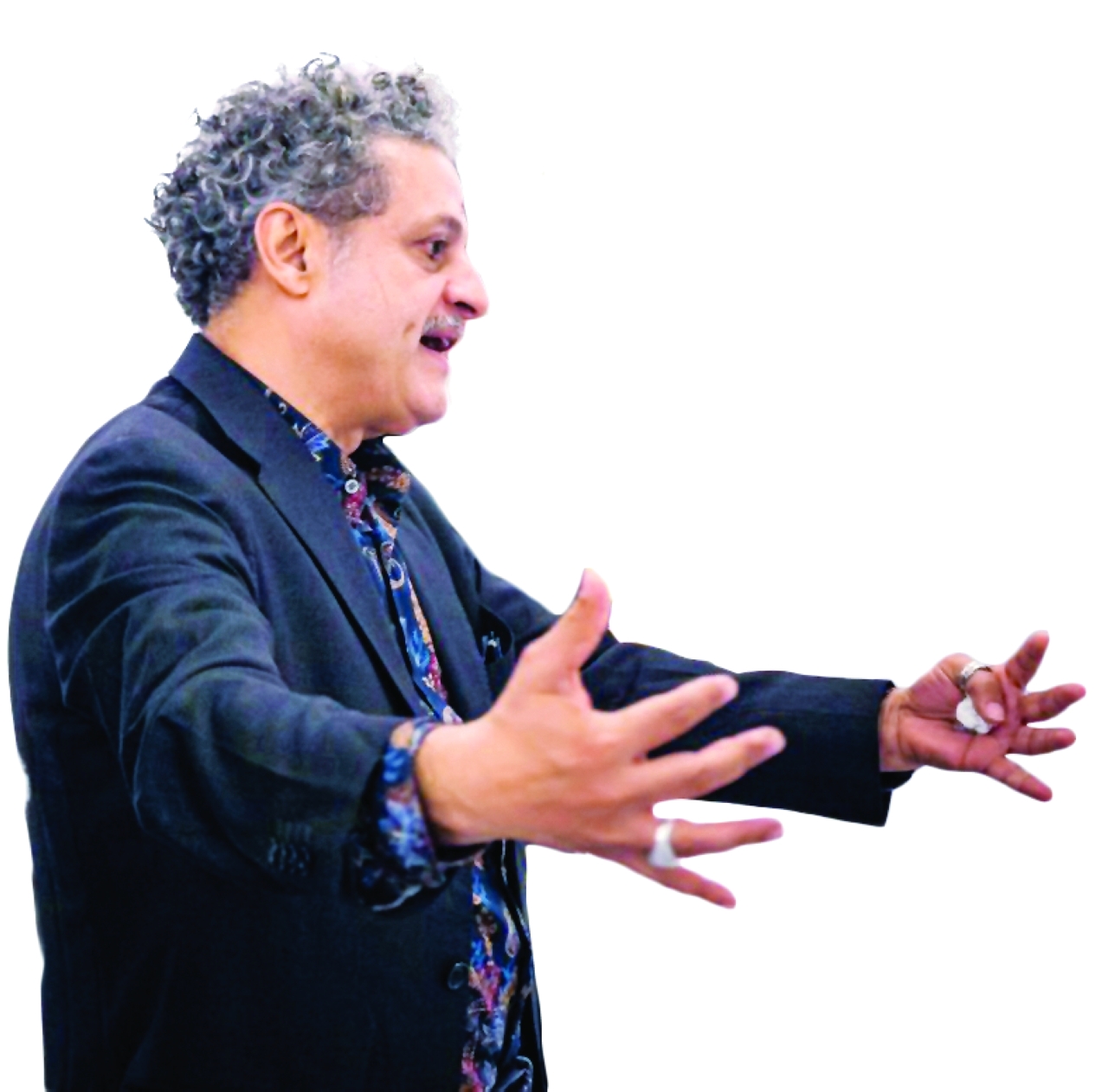 يعد «بداية» المعرض الأول للفنان في دبي، ويمثل تتويجاً لرحلاته بين الشرق والغرب، إذ يجمع بين ثناياه هويات متعددة، من الثقافات الغربية والعربية والافريقية. كان قد تشرب الفن في لبنان، وأكمل دراسته في أكاديمية الفنون الجميلة في فلورنسا، ثم أتاحت له إقامته الطويلة في إيطاليا لأكثر من 35 عاماً فرصة التعمق في تاريخ الفن. كما تأثر بأفريقيا في بداية حياته الفنية إثر زيارة عائلية إلى الغابون ولاحقاً بالأرابسك والجداريات الهندسية الإسلامية في مدينة فاس المغربية. عُرضت أعماله في معارض بأوروبا والعالم وتمت دعوته أخيراً للمشاركة في مشاريع المتاحف في إيطاليا.