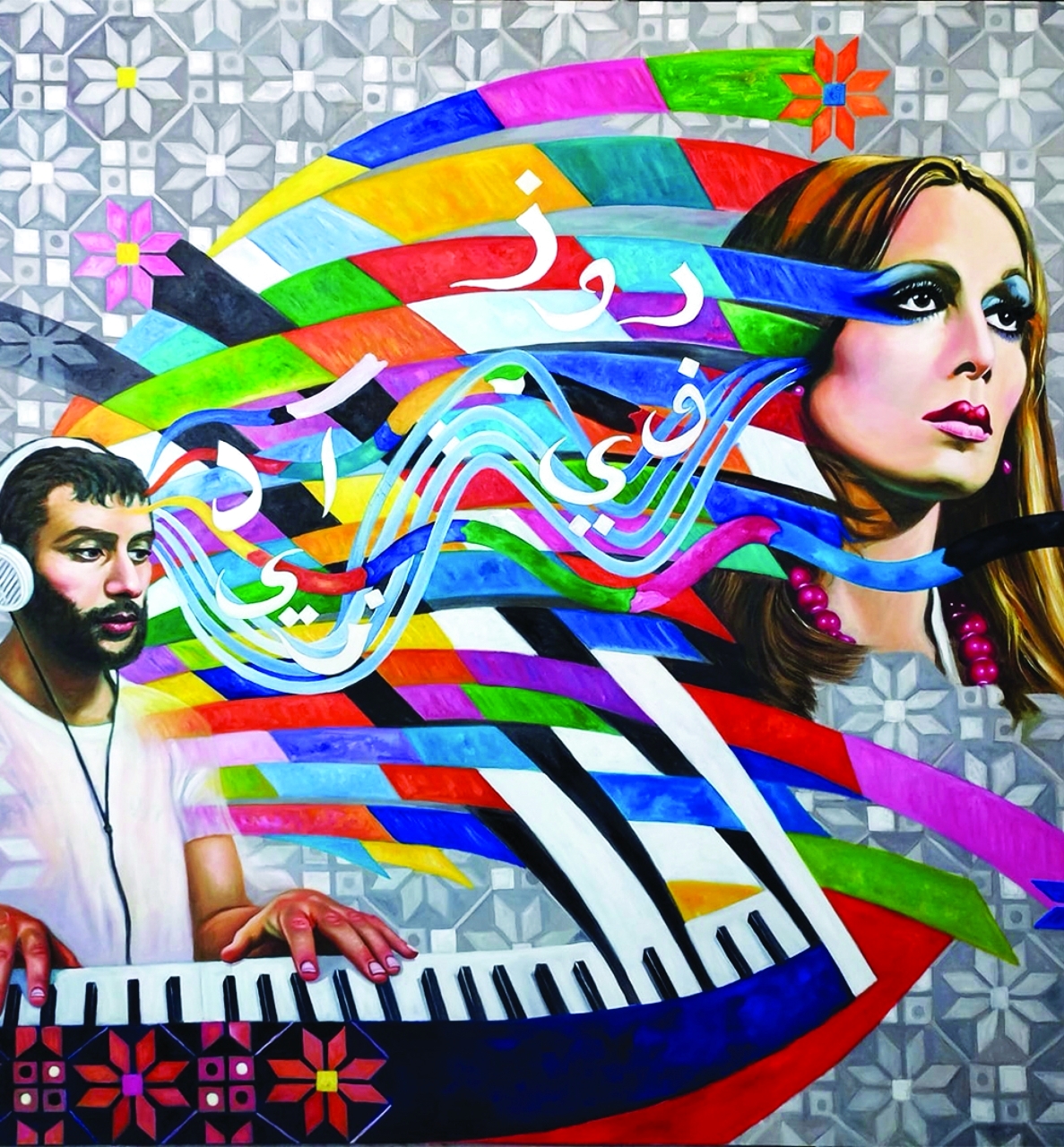 وإلى جانب لوحاته، تظهر أعمال الرسامة الألمانية أنيكا جيجل، التي انتقلت أخيراً إلى دبي. لوحاتها الزيتية تحتفي بحبها لثقافات العالم الجنوبي مع تركيز على أفريقيا والشرق، وتعد شهادة على جمال الحياة بألوانها النابضة وأنماطها الجريئة. وغالباً ما تضفي الفنانة عليها عناصر متكررة وأساسية، أبرزها المرايا التي تمنح العمل بنية وعمقاً، مع لمسة ساحرة بتأثير مربك على المشاهد.