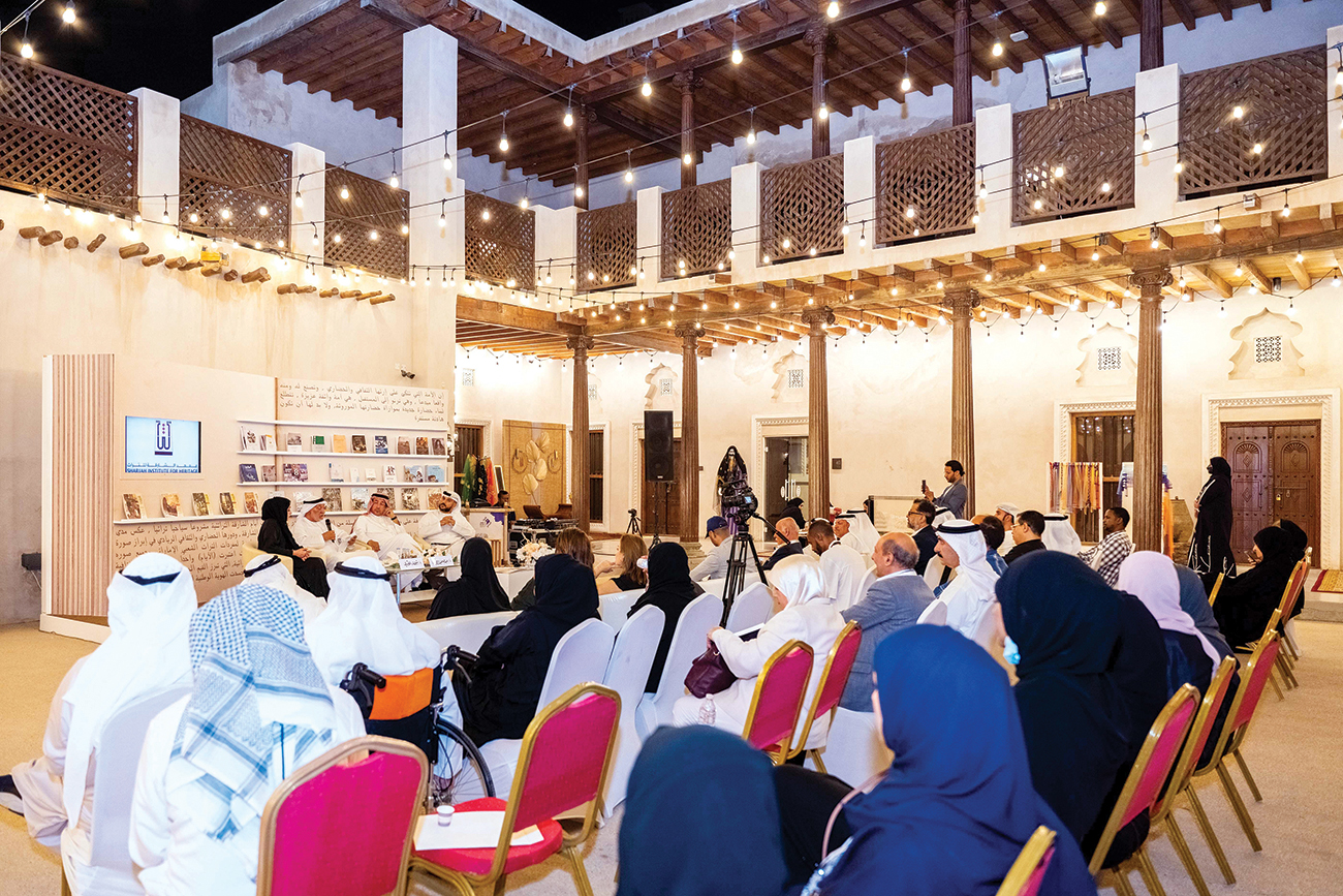 وطرح المحاضر خلال حديثه عددًا من التساؤلات المهمة حول تحديد مفهوم الاستدامة في التراث الإماراتي، وكيفية المحافظة على حيويته وديمومته رغم تعاقب الأجيال وتبدل الوسائل والغايات والأحوال، داعيًا إلى ضرورة تجريد التراث من المظاهر والظواهر والصور النمطية والأنماط المعهودة المرتبطة بالزمان والظرفيات الأخرى، في سبيل الوصول إلى البناء المعرفي المنشود من هذا التراث.