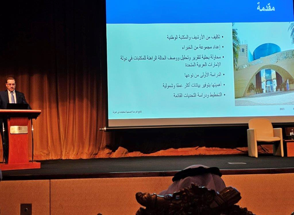 وأطلق الأرشيف والمكتبة الوطنية في الندوة دراسة مسحية هي الأولى من نوعها عن المكتبات في دولة الإمارات العربية المتحدة، أعدها مجموعة من الخبراء والمختصين في علم المكتبات، وخرجوا فيها بتقرير وتحليل ووصف للحالة الراهنة للمكتبات في الدولة، وتضمنت الندوة أيضاً ثلاث جلسات علمية متخصصة.