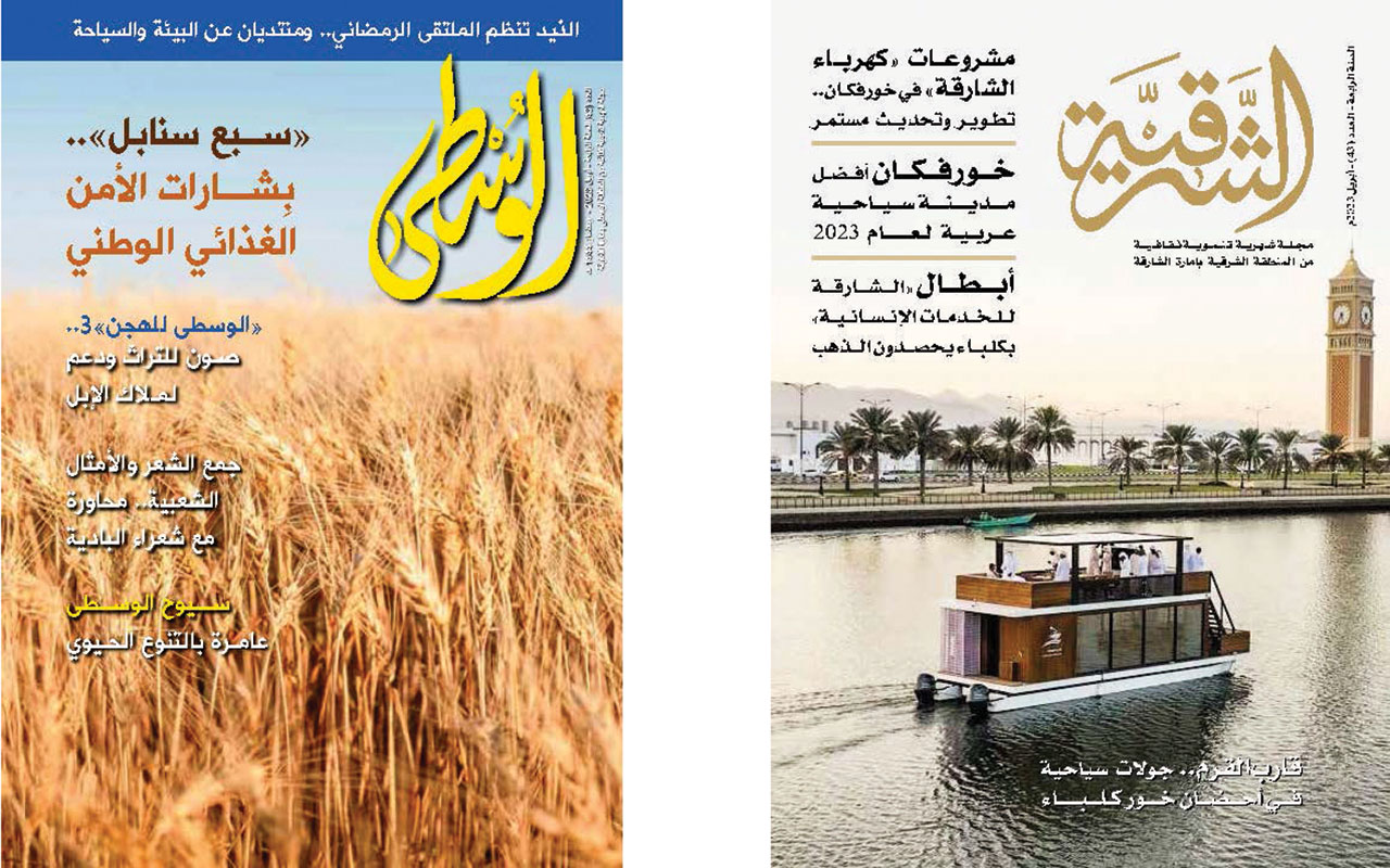 صدر عن دائرة الثقافة في الشارقة، العدد «43» من كل من مجلة «الشرقية» ومجلة «الوسطى»، عن شهر أبريل 2023، واشتمل العددان على موضوعات سلطت الضوء على تفاصيل المشهد التطويري المتنامي في المنطقتين الوسطى والشرقية.