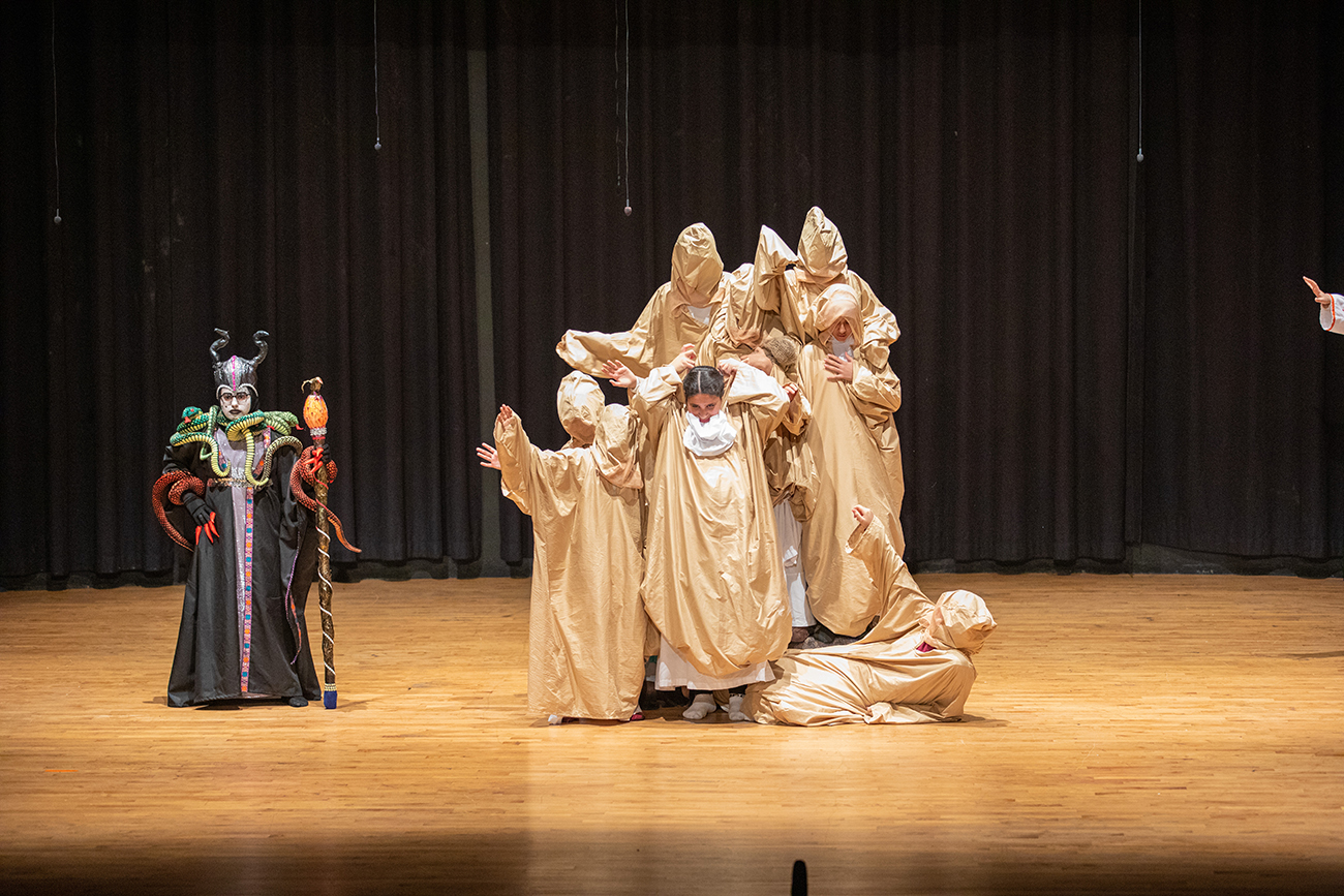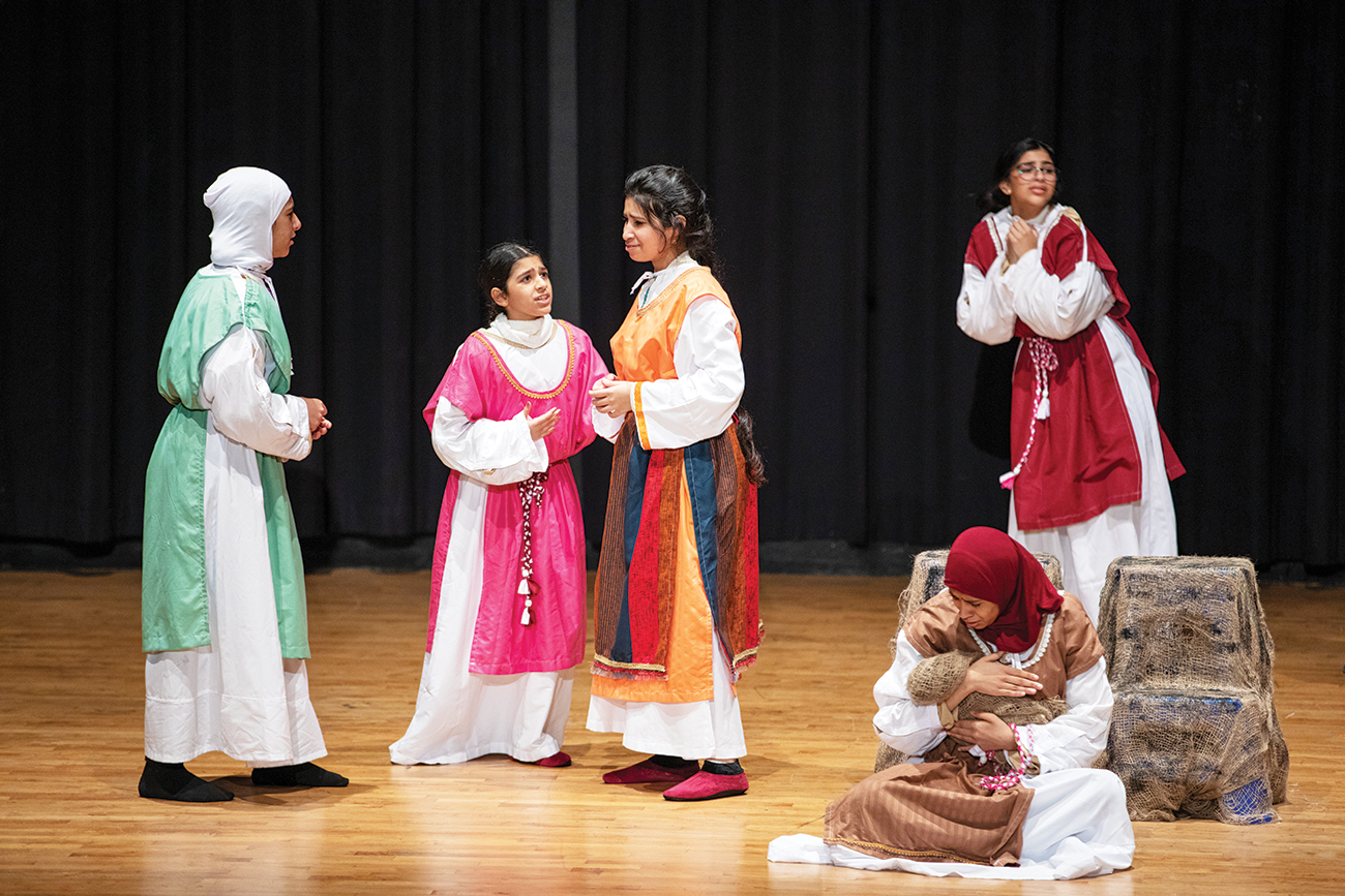 وجاء تحت عنوان «نور» وأخرجته المعلمة هبة بركات، ويرهن العمل تخطي المشكلات والأخطار الحياتية بما لدى المرء من حصيلة معرفية، وذلك من خلال حكاية رمزية ينمسخ فيها سكان قرية إلى أحجار بعد عجزهم عن حل اللغز الذي طرحهم عليهم «الوحش»، ولن يكون بوسع أحد أن ينقذهم سوى ابنتهم «نور» كونها الوحيدة المتعلمة.
