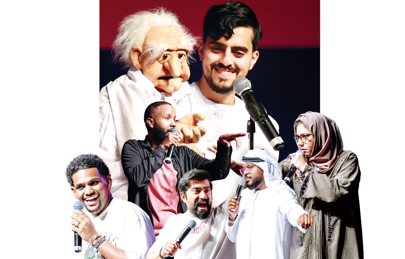 وإلى جانب تقديم فقرات ارتجالية تميز الفنان الإماراتي عبد الله الأنصاري بموهبة أخرى، وهي فن «التكلم البطني» في حضور الدمية «أبو جليل»، والتي كانت من أكثر الفقرات إمتاعاً وجذباً للجمهور في مهرجان دبي للكوميديا، وأكد الأنصاري أنه يحترف الكوميديا الارتجالية منذ عام 2017، ولكن تقنيات «التكلم البطني» هي موهبة رافقت دراستي في المرحلة الثانوية، وتطورت مع الوقت. بات لدي العديد من الدمى، التي أستخدمها في تقديم محتوى كوميدي ممتع وطريف، يعتمد على استخدام الحركات الجسدية، والتعبير الوجهي لتعزيز الرسالة، التي يحاول المتحدث إيصالها، ويمكن استخدام الدمى كونها وسيلة لتوضيح النقاط المهمة أو لتقديم شخصيات مختلفة، خلال العرض.