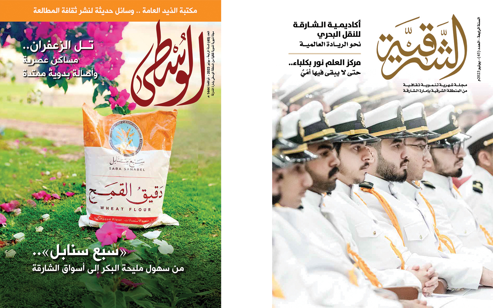 صدر عن دائرة الثقافة في الشارقة العدد «46» من كل من مجلة «الوسطى» ومجلة «الشرقية»، عن شهر يونيو 2023، واشتمل العددان على موضوعات سلطت الضوء على تفاصيل المشهد التطويري المتنامي في المنطقتين الوسطى والشرقية.