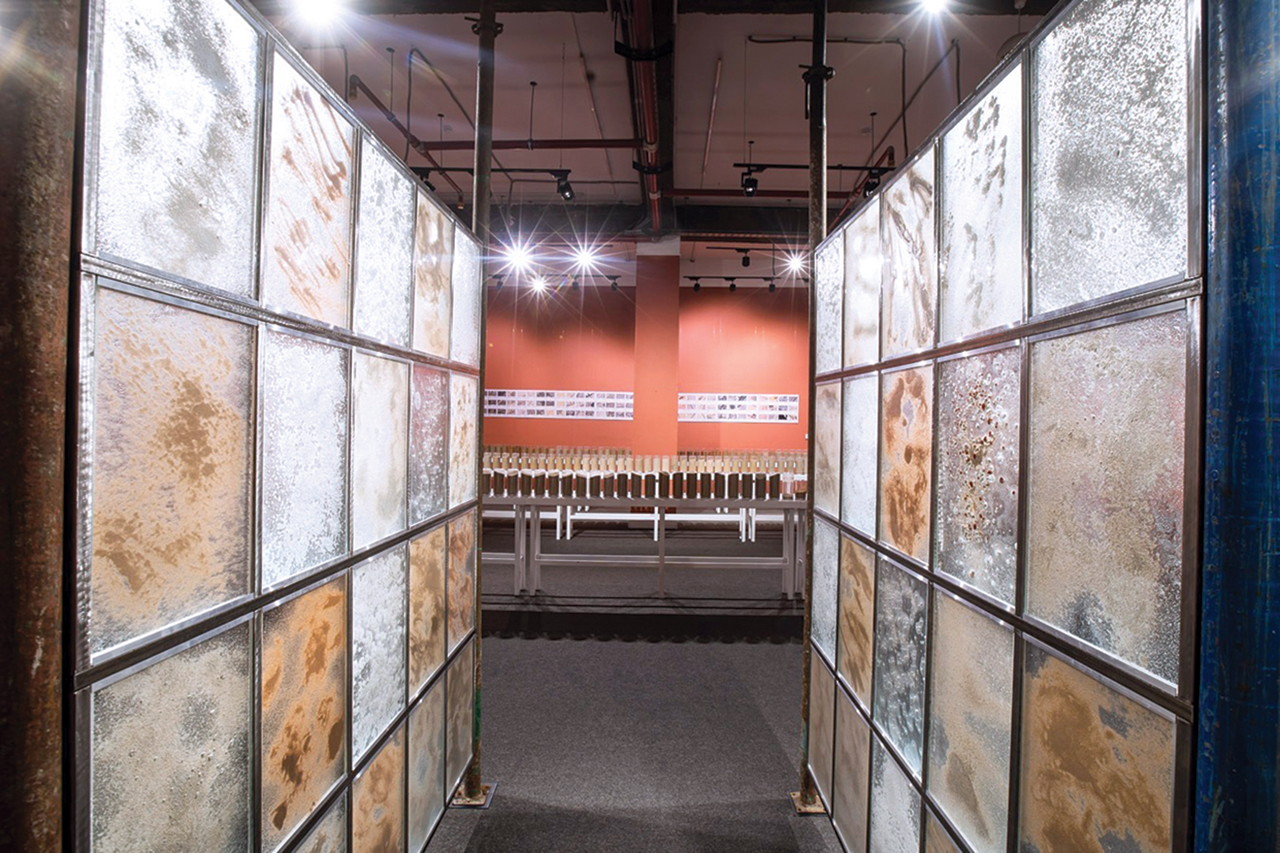 ومن أبرز القطع الفنية في المعرض، عمل فني جديد وحصري باسم "طريق الرمال"، والذي يتكون من هيكلين معدنيين مصممين بشكل دقيق ومعقد، ومزودين بألواح زجاجية خاصة مصنوعة يدويًا من رمال الصحراء المحيطة بمدينة دبي.