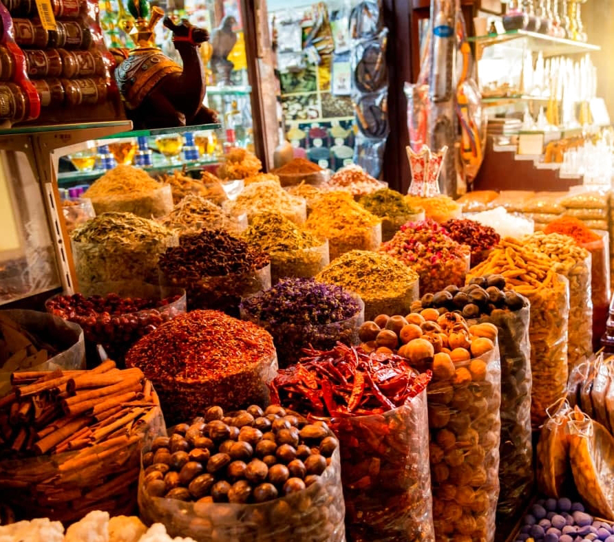 يصف الموقع سوق التوابل بوليمة للحواس، لاحتوائه على مجموعة «مبهجة» من التوابل الغربية والمحلية. باعته على استعداد لتقديم نصائح عن أصول واستخدامات التوابل التي يمكن شراؤها بالوزن أو بكميات معبأة مسبقاً مع خصومات متاحة للشراة بالجملة، كما يمكن استكشاف المكسرات والفواكه المجففة والزيوت والزعفران في المكان، الذي يعد مقصداً أيضاً للباحثين عن علاجات تقليدية وخلطات توابل.