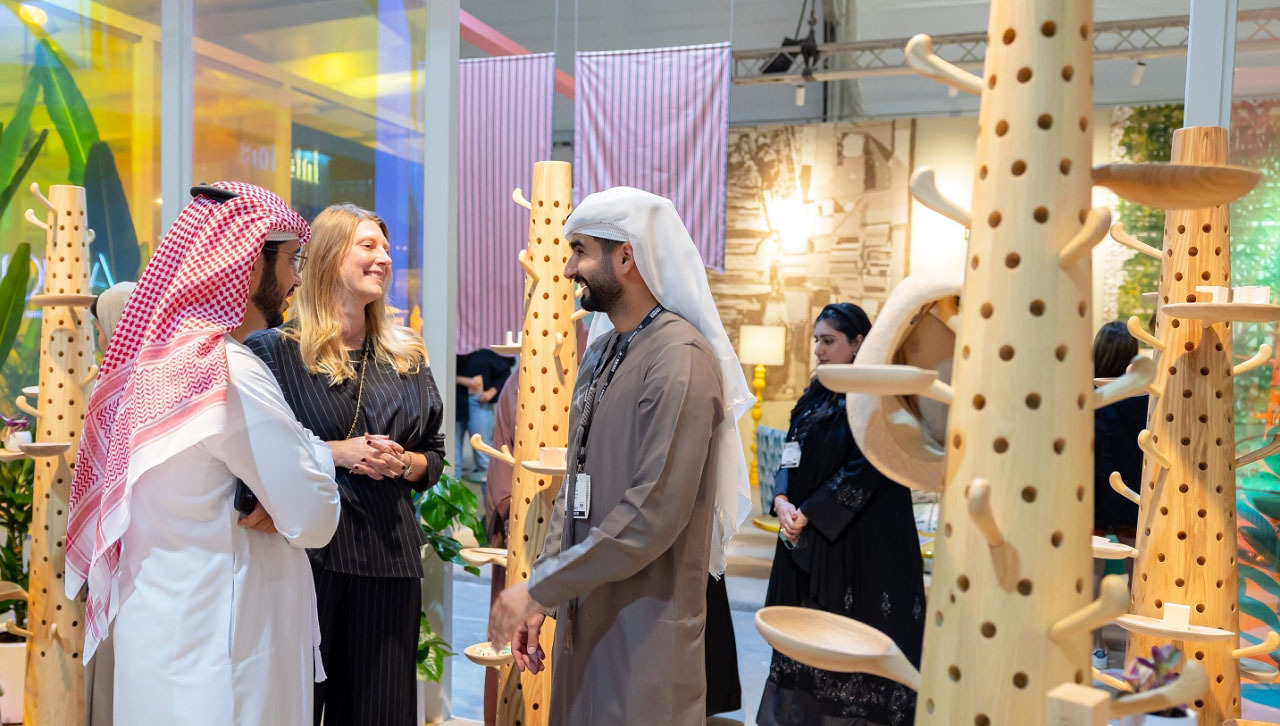وتعرف بن خرباش على تفاصيل مبادرة «صمم في السعودية»، التي تُعنى بتطوير قطاع التصميم الصناعي في المملكة العربية السعودية، وتوقف عند ركن شركة (GRID Riyadh)، التي أطلقها المهندس المعماري مزيد الخطاف، وكذلك ركن علامة (BEIT Collective)، التي تتعاون مع مصممين لبنانيين ودوليين لتعزيز الحرفة اليدوية والمحافظة عليها، كما زار جناح شركة «جاسمين لاين»، التي أسستها ياسمين كريكوريان في 2020، وجناح (Akar de Nissim)، الذي تبرز تصاميمه تأثيرات الحرف اليدوية التقليدية وأبعادها الأنيقة، واطلع على العمل الفني الذي استلهمه المصمم الإماراتي عمر القرق، مؤسس استوديو Modu Method من التراث المحلي.