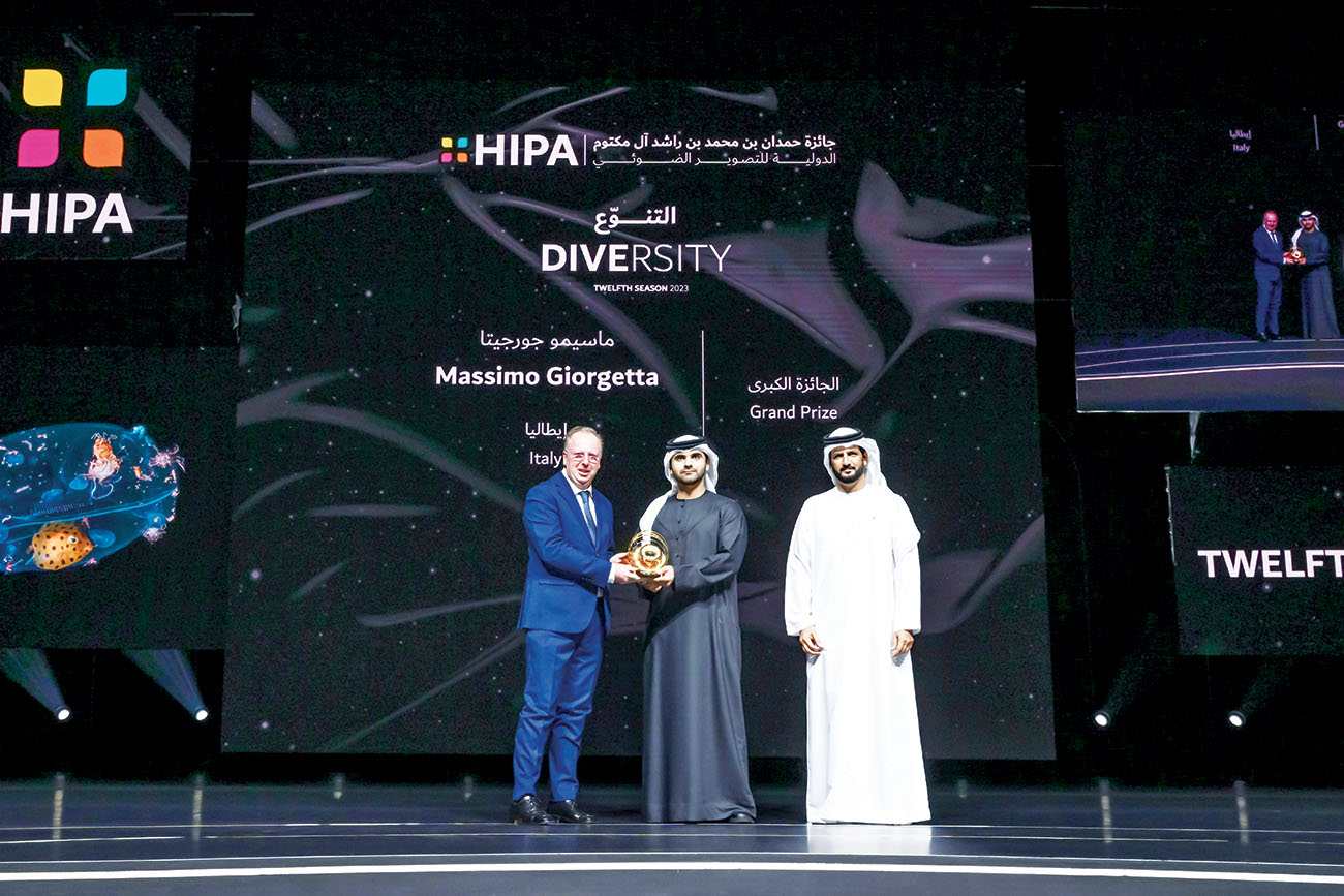 وقد قام سمو الشيخ منصور بن محمد بن راشد آل مكتوم بتكريم الفائز بالجائزة الكبرى البالغة قيمتها 120 ألف دولار، والتي كانت من نصيب المصوّر الإيطالي «ماسيمو جورجيتا»، الذي وثّقت صورته كائناً مدهشاً من فصيلة قنديل البحر الغلالي «Jellyfish Tunicate»، وفي داخله وعلى سطح جسمه عدد من الكائنات التي تعيش داخل وخارج جسمه.