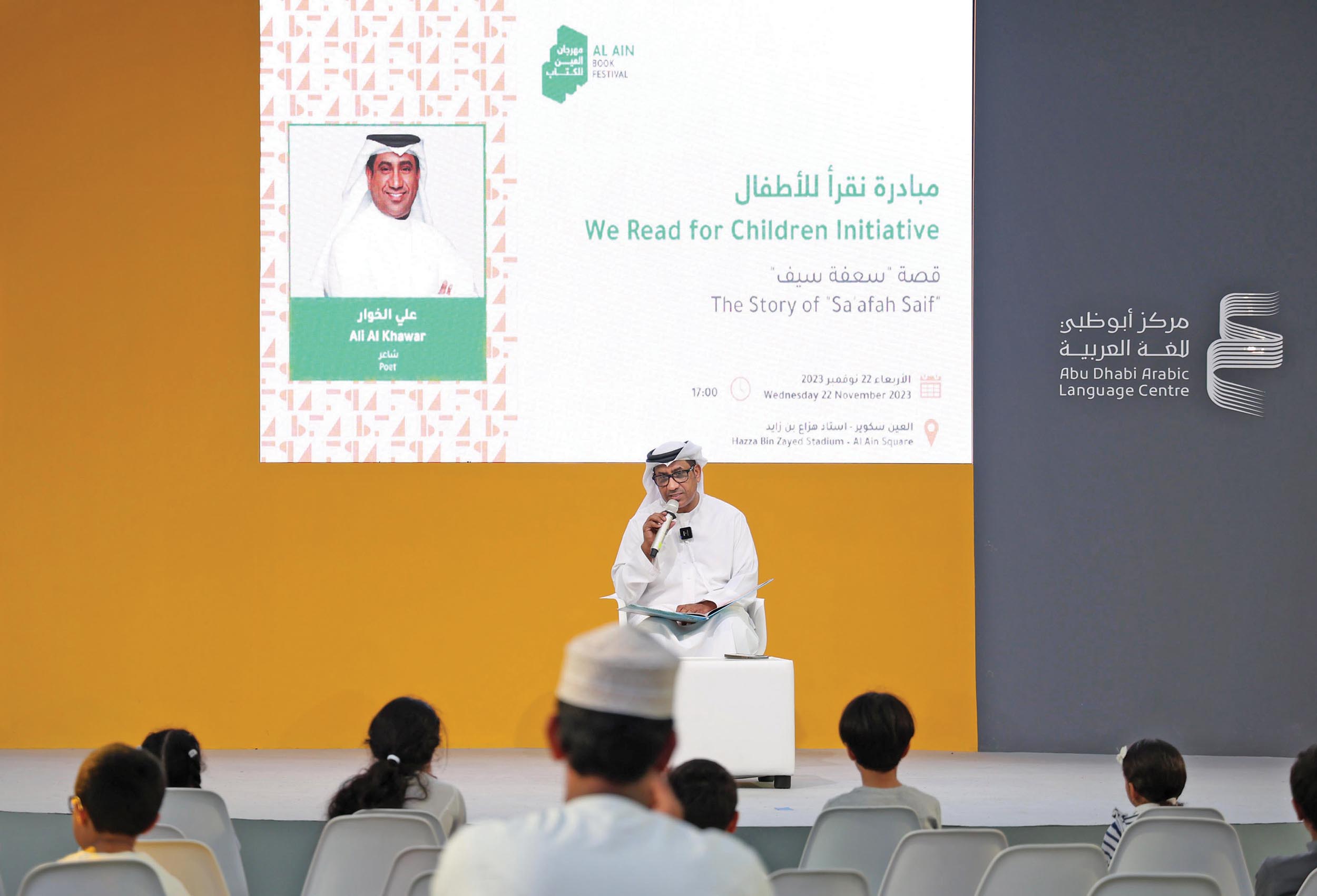 استضاف مهرجان العين للكتاب 2023 الذي ينظمه مركز أبوظبي للغة العربية، شاعر الوطن علي الخوّار في لقاء مع مجموعة من الأطفال من زوّار الحدث، حيث قصّ عليهم حكاية «سعفة سيف» للكاتبة الإماراتية سارة عبدالله الشامسي، في إطار مبادرة «نقرأ للأطفال».