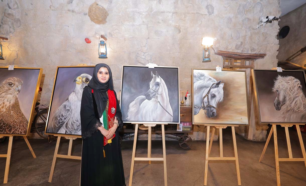 وتشير لوحات الفنانة مريم كاظمي إلى مكونات في الثقافة الإماراتية وتقاليدها المتوارثة، مؤكدة أن الاحتفال بعيد الاتحاد الــ52 مناسبة مهمة وعزيزة على قلوبنا جميعاً.