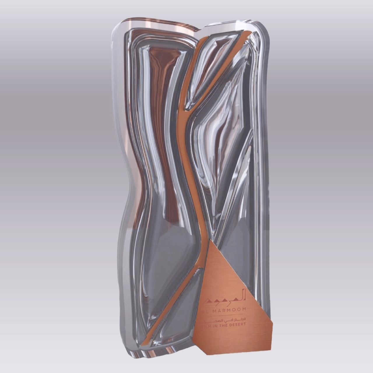 ويمزج تصميم الدرع بين أناقة وشفافية الكريستال وصلابة النحاس، بينما تعكس الجذور المتصلة بقاعدته أهمية الارتباط بالماضي والتراث والقيم المحلية والهوية الوطنية، كما تمثل الجهود المبذولة للمحافظة على منطقة المرموم ودعم توازن النظام البيئي.