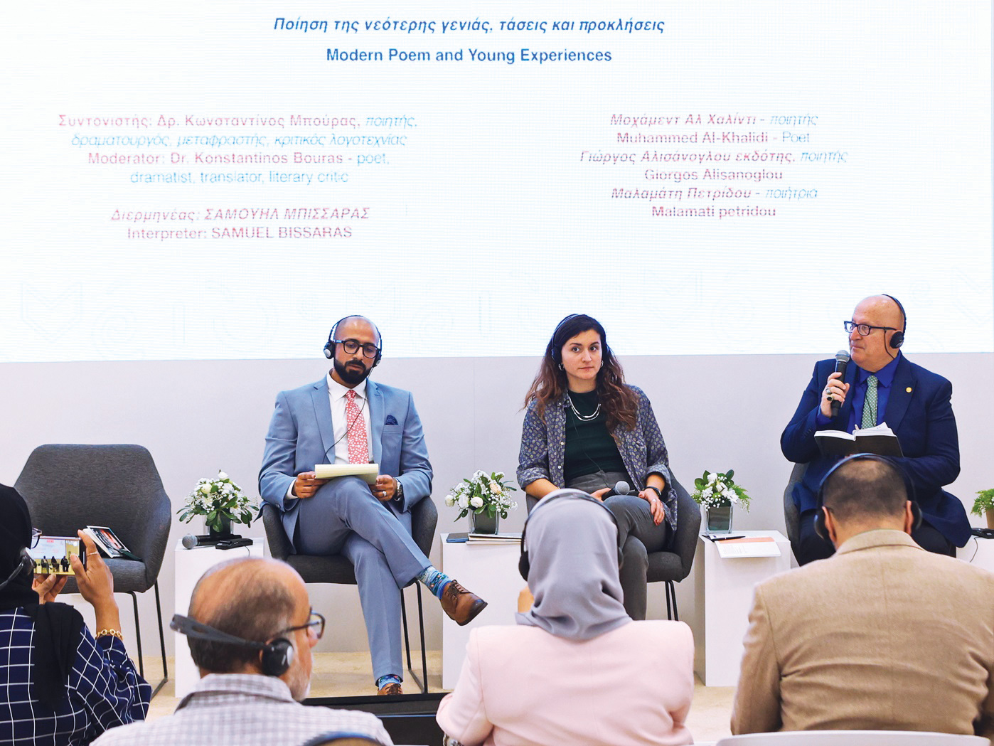 استضافت «هيئة الشارقة للكتاب»، ضمن فعاليات احتفاء اليونان بالشارقة أول ضيف شرف عربي على معرض سالونيك الدولي للكتاب، الشاعر الإماراتي محمد الخالدي، والشاعرة اليونانية مالاماتي بيتريذو، في جلسة نقاشية شعرية، بعنوان «القصيدة الحديثة والتجارب الشابة»، أدارها كونستانتينوس بوراس، لاستعراض تيارات القصيدة الحديثة، وتجارب الشعراء الشباب.
