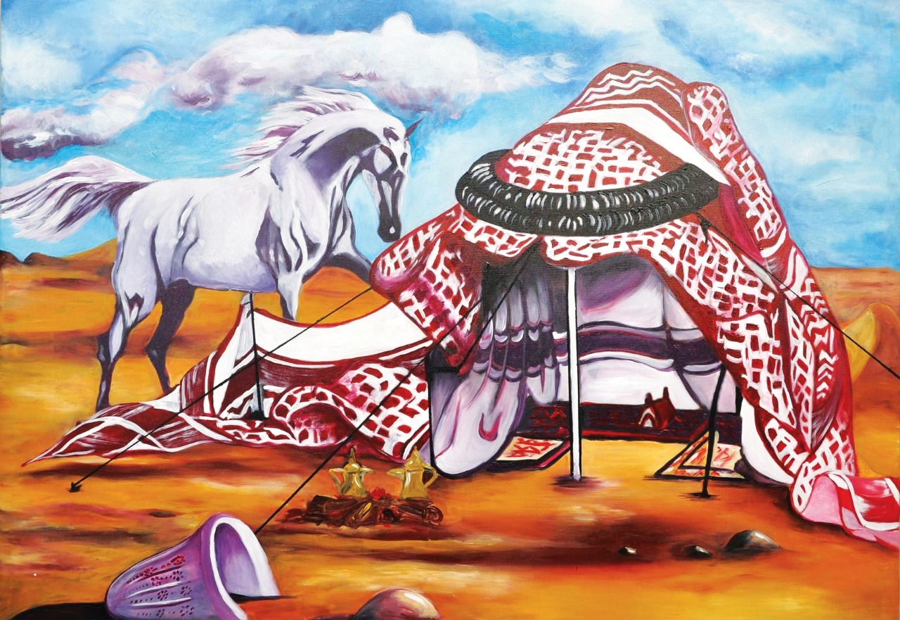 وأشارت إلى حضور الرجل في أعمالها التي تستحضر فيها عناصر من البيئة البدوية في الإمارات، وقالت إن لديها «عملاً فنياً استلهمت فيه لبس الرجل الإماراتي التقليدي، وجعلته محور الرؤية الفنية وهو عبارة عن الخيمة البدوية، وقد صورتها بشماغ وعقال بأسلوب رمزي، لتعبر عن الهوية الإماراتية التي تلخص رمز الأصالة والتمسك بالتقاليد وتبرز دور الرجل».