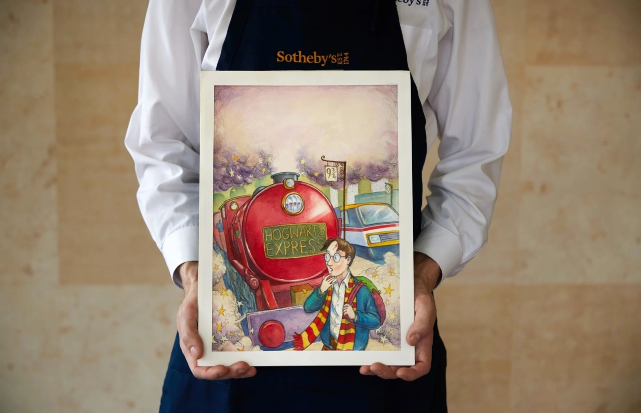 يباع بمزاد علني تنظمه دار «سوذبيز» في نيويورك، الأربعاء، الرسم الأصلي الذي تَصدر غلاف الطبعة الأولى للجزء الأول من سلسلة كتب «هاري بوتر»، وبلغ سعره التقديري نصف مليون دولار. ففي العام 1997، أُسندت إلى الرسام توماس تايلور، الذي كان يبلغ 23 عاماً من كامبريدج البريطانية، مهمة إعداد رسم مائي لغلاف كتاب «هاري بوتر وحجر الفيلسوف».