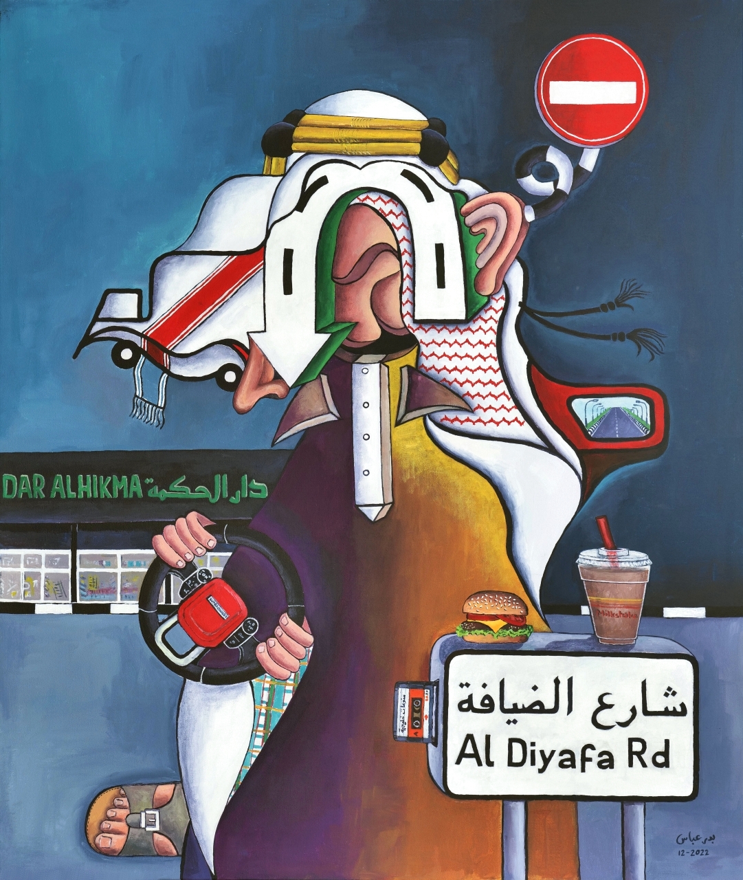وفيما يتعلق بتفسيراته المرحة والملهمة في لوحته «السرعة ممنوعة»، يقول بدر: «عندما تكون في دبي، لا يمكنك أن تفوت الأبراج الشاهقة والطرق السريعة متعددة المسارات وعالية السرعة، تماماً كما سترى بالتأكيد رادارات الطرق ذات الطراز المستقبلي الفائق والمظهر الفضائي تماماً، كما أن دبي بالتأكيد مدينة رائعة عندما يتعلق الأمر بالطرق والبنية التحتية والتقاطعات، والإشارات والشوارع الجميلة».