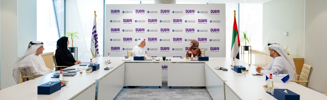 وعلى هامش توقيع المذكرة، التقت هالة بدري، مدير عام هيئة الثقافة والفنون في دبي «دبي للثقافة»، بوفد الجامعة الذي ضم كلاً من الدكتور عارف سلطان الحمادي، نائب الرئيس التنفيذي لجامعة خليفة، والدكتور فهد المسكري، مدير مكتب نائب الرئيس التنفيذي للجامعة، والدكتور خالد العوضي.