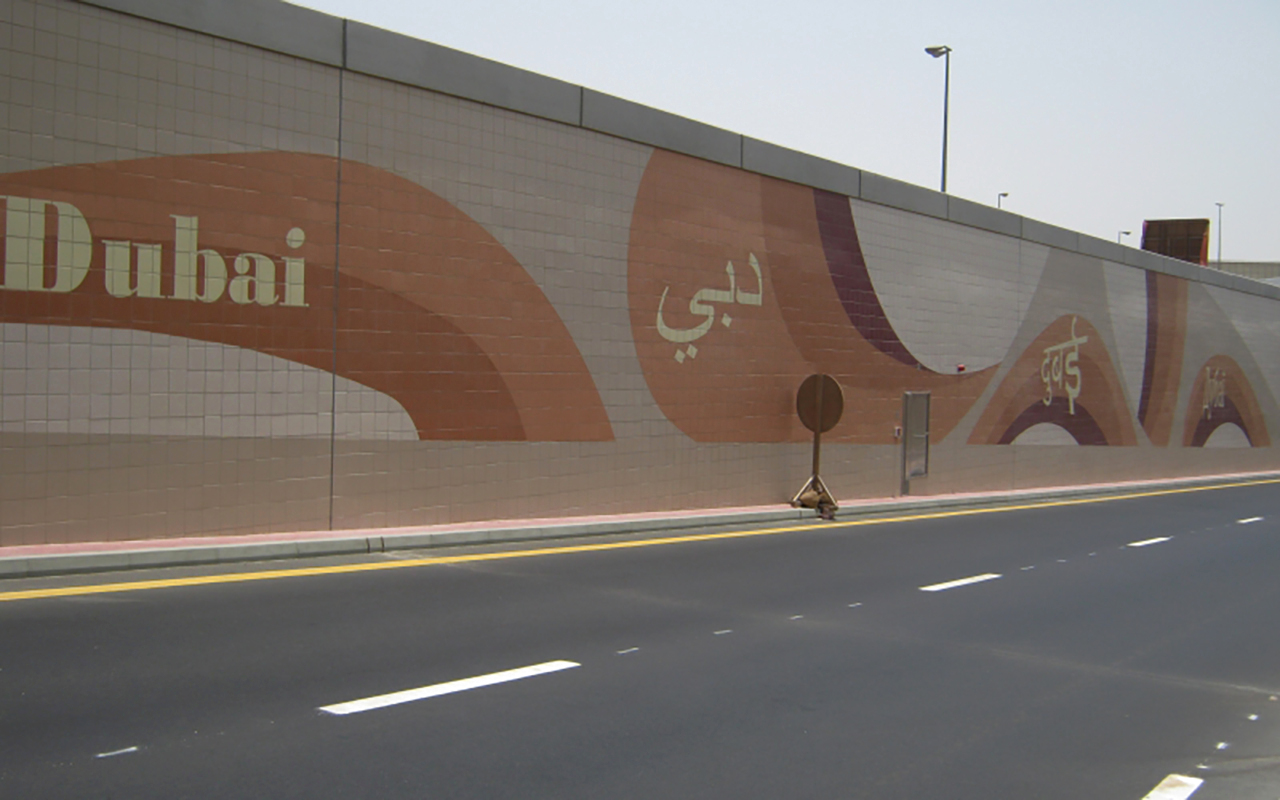 أنفاق دبي تشبه كثيراً ما تعمر به حيطانها من جداريات خلابة، تحمل تواقيع فنانين ثقال الوزن على الساحة الفنية، ولكن ما يميز هذه الأنفاق أن معظم جدارياتها شكلت من السيراميك المزركش بألوان زاهية، لتمثل علامة فارقة في وجه دبي الجميل. لتبلغ بها العلا، ليس في عمرانها وحسب، وإنما في أنفاقها أيضاً، وبلا شك أن نفق المطار الذي يقع جزء منه تحت مطار دبي، يظل واحداً من أكثر معالم بينة دبي التحتية جمالاً وإبهاراً، فهو يحمل توقيع الفنان التشكيلي محمد فهمي، الذي صنع فيه جدارية بلغ طولها ما يقارب 75 ألف متر مربع. في نفق المطار قدم محمد فهمي، 88 لوحة مرسومة، إضافة إلى أعمال زخرفية كثيرة، منفذة جميعها على السيراميك، ومستخدماً عناصر لونية استوحاها من البيئة المحلية.