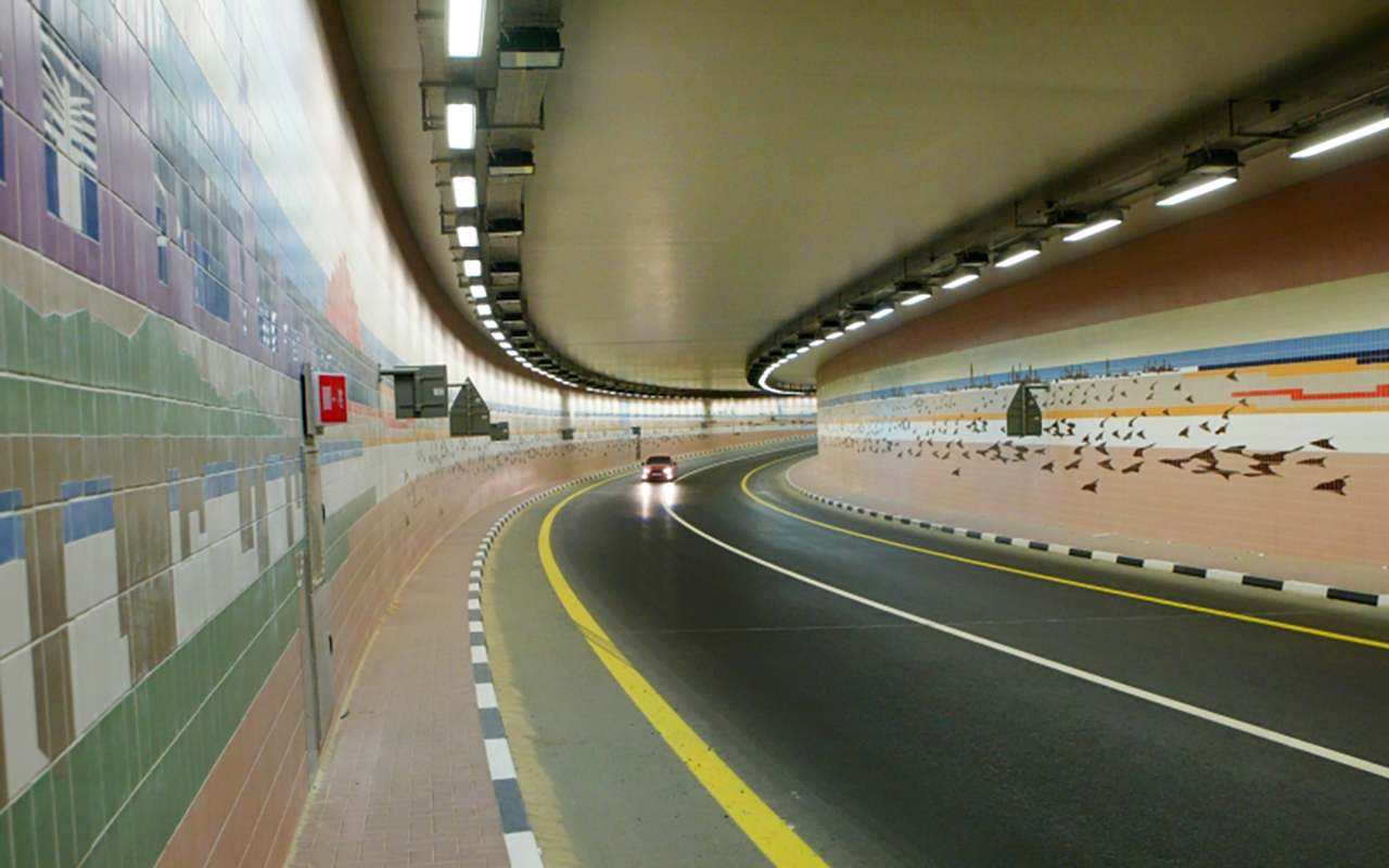 لكل نفق في دبي حكايته، وجدارياته الخاصة التي توثق لملمح من ملامح جمالها، ولكل واحد منها نصيبه من الإبهار والجمال والكمال الذي طالما امتازت به «دار الحي»، فقد روعي عند إنشاء هذه الأنفاق اختيار تصاميم تجميلية خاصة، بعضها مستوحاة من تفاصيل الموروث الشعبي، والتراثي للإمارة، وأخرى جاءت لتوثق معالم دبي، وثالثة خصصت للحرف العربي، وغيرها.