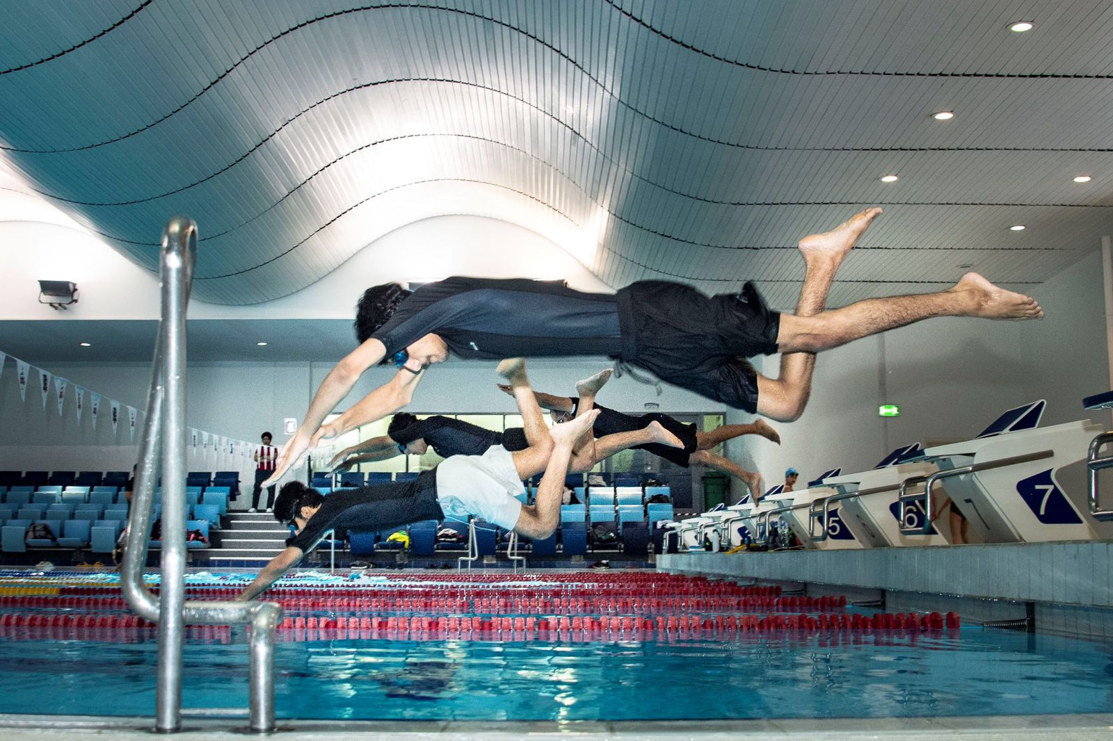 وفي مسابقة السباحة التي تتواصل منافساتها في مجمع حمدان الرياضي، كسب السباق شبيب الدرمكي وعبد الله الفلاحي لينالا 10 علامات.