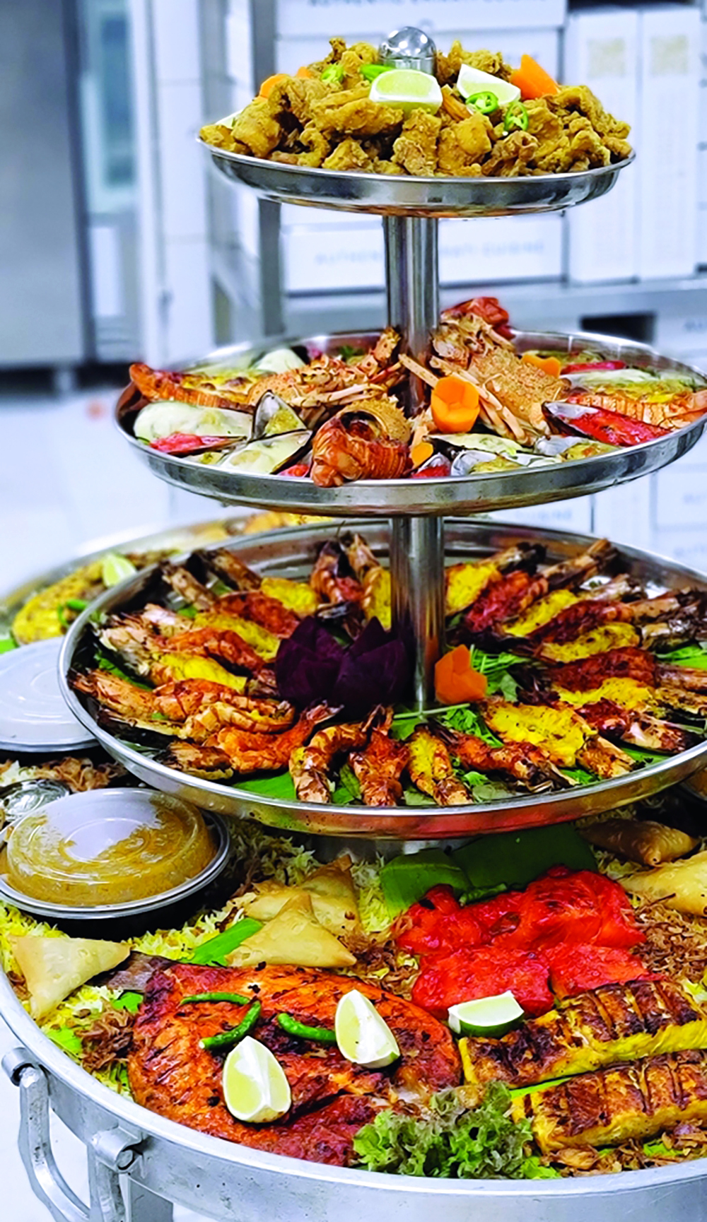 حيث تكون الأسماك والذبايح جاهزة ومتبلة قبل يوم العيد، ويكون لدينا طلبات للاستلام والبعض يزورنا في المطعم للغداء والعشاء ونستمر بالعمل إلى الساعة 12:00 بالليل
