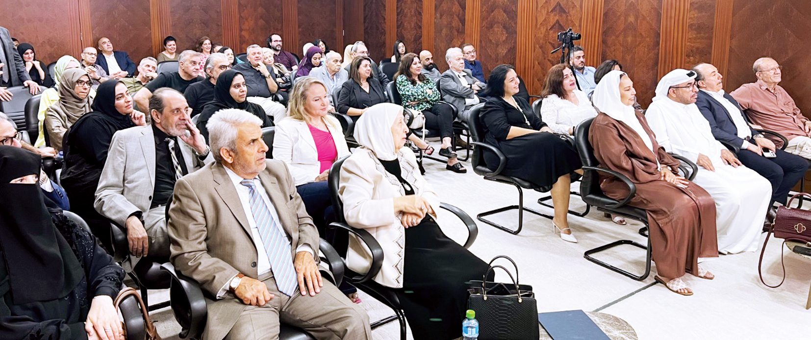 حضر المحاضرة جمهور من مختلف الشرائح الثقافية والفنية وشخصيات عامة، كان في مقدمتهم الأستاذة الدكتورة فاطمة الصايغ عضو مجلس الأمناء، والأستاذ إبراهيم الهاشمي المدير التنفيذي للمؤسسة، والفنانة سلمى المري، والفنان محمد خير جراح، والمخرج وليد قوتلي، وغيرهم من الشخصيات الثقافية وأصدقاء المؤسسة.