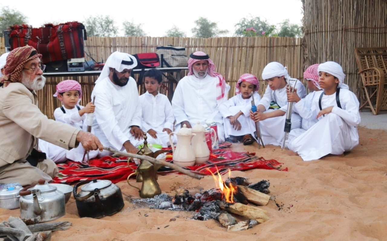 وأضافت: «يتم أيضاً خلال المخيم تعليم الجيل الجديد عادات «السنع» من آداب الضيافة وتقديم القهوة وتقديم الطعام للضيوف وكيفية الإمساك بالدلة والفنجان ومعرفة كيفية البدء بتقديم الضيافة من الأكبر سناً في المجلس وكيف يعرفون أن الضيف اكتفى من القهوة عن طريق هز الفنجان وغيرها من العادات التي يعرفها الكبار، بالإضافة إلى تعليمهم العديد من الحرف اليدوية كقرض البرقع وغيرها من الحرف التي يمكن عملها من سعف النخيل».