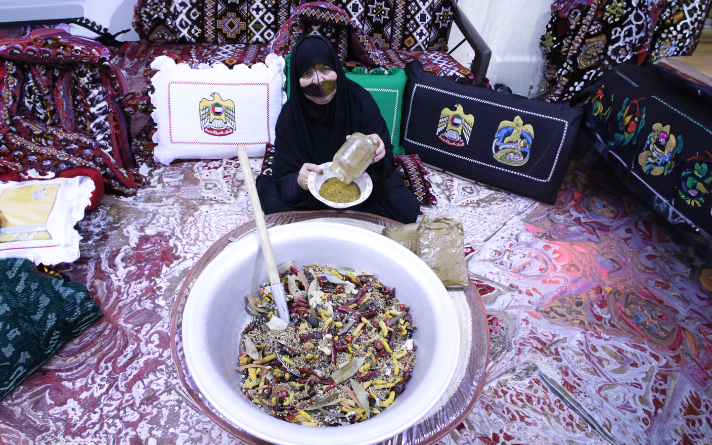 بين عبق العود ورائحة البهارات كبرت مريم أحمد عبدالله اليماحي، وهي من مواليد دبا الفجيرة، حيث استقر عبق الأيام المفعمة بحب التعلم وممارسة ما تفعله الأمهات في ذاكرة مريم وهي طفلة، فتعلمت معظم الحرف اليدوية التي تتقنها الأمهات ومنها التعرف على البهارات أو التوابل، وكانت أجمل اللحظات تلك التي تجلس فيها إلى جوار أمها في عمر الثامنة، إذ كانت تعمل على مساعدة الأم لتتعلم منها صنع البهارات.