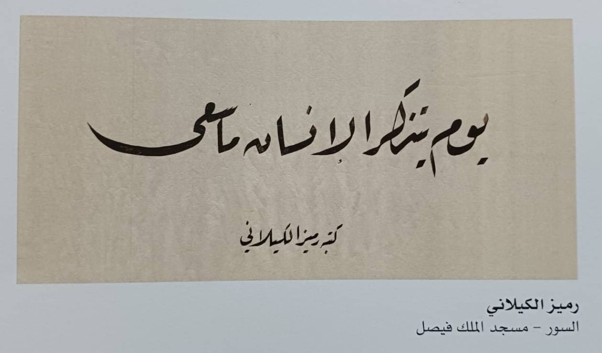 في تجوال العويس على لوحات الخطّاطين المُتدرّبين المشاركين وعددهم نحو 96 أغلبهم من طلّاب مدارس وجامعات من الجنسين وآباء وأمّهات، من العرب وغير العرب، استحسن لوحة الكيلاني، وهي الآية القرآنيّة من سورة النّازعات «يوم يتذكّر الإنسان ما سعى» بخط الرّقعة، كما أشاد بإشراكه في المعرض وهو في عُمر 11 سنة؛ إذ يُعدّ أصغر خطّاط مُتدرّب في برنامج كتاتيب للخط العربي، وتحتل لوحته مكانًا مُتميّزًا في القاعة؛ فهي قُبالة نظر الدّاخل إليها يسارًا.