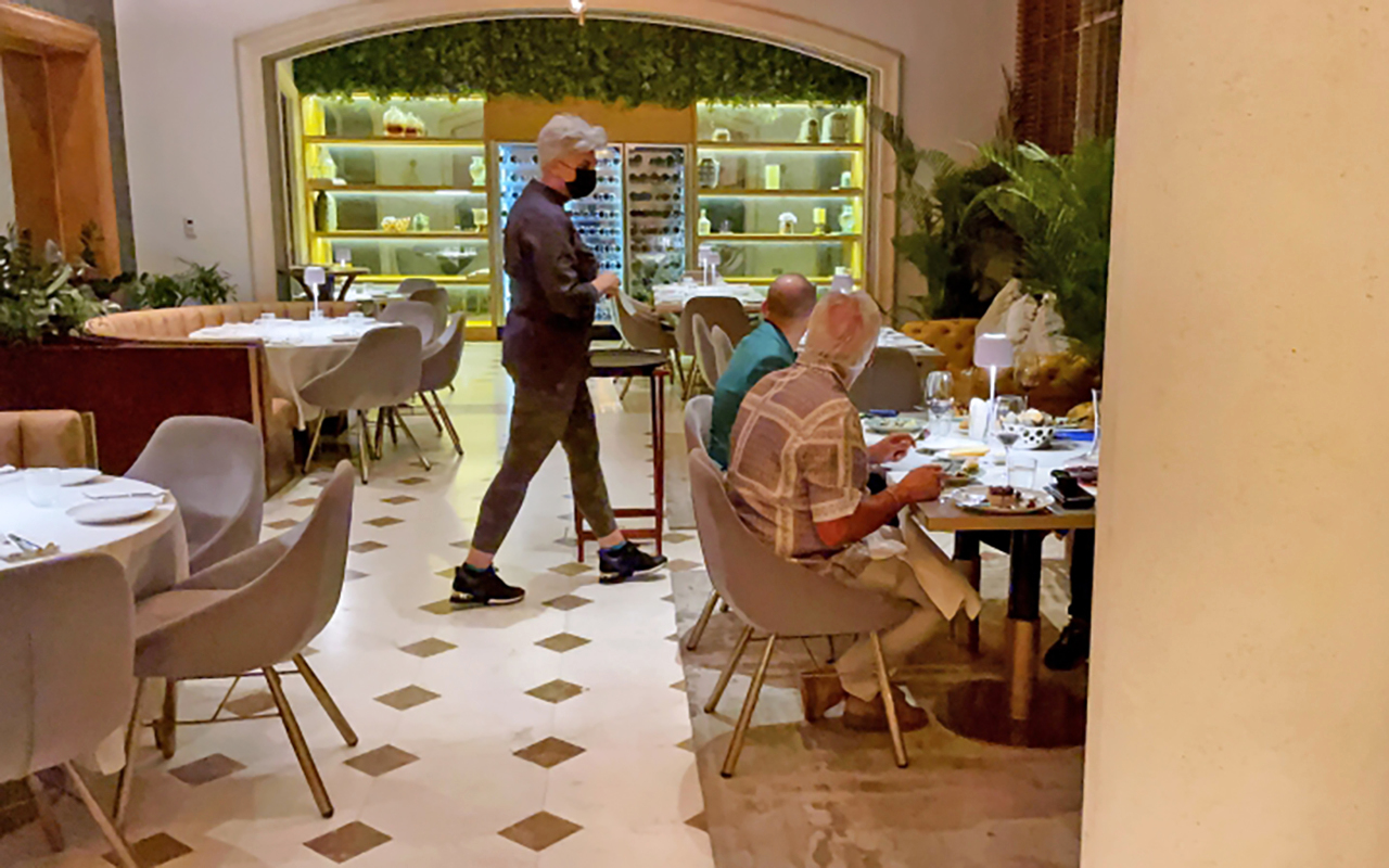محاط بأكثر من ألفي فيلا سكنية وتتميز التصميمات الداخلية الرائعة فيه بين الزراعة المورقة وأشجار زيتون البحر الأبيض المتوسط. يحيط المطعم بجدران بيضاء وتراسات من الحجر الرملي، ويقدم أجواء مريحة بالإضافة للتصميمات الداخلية المنعشة.