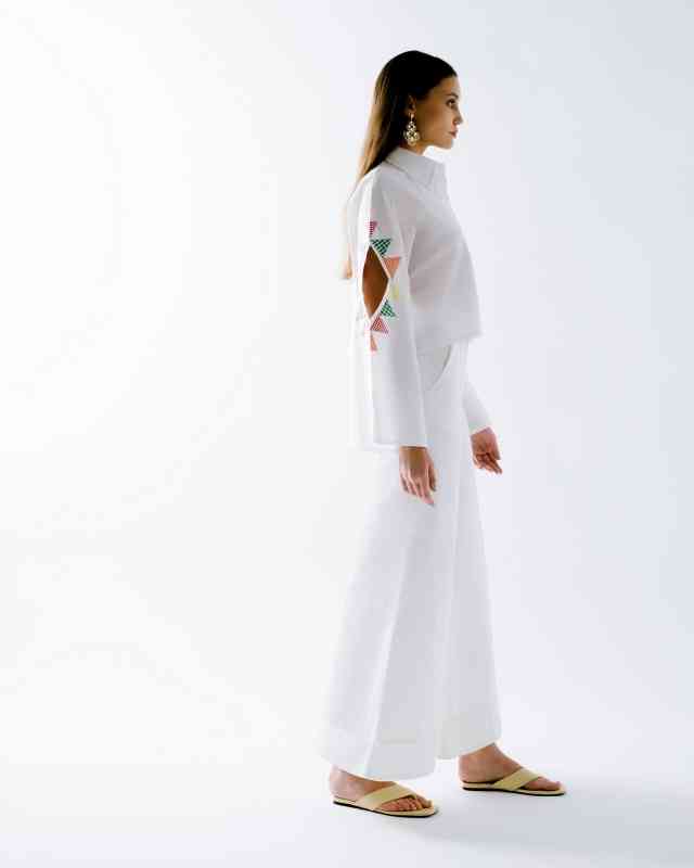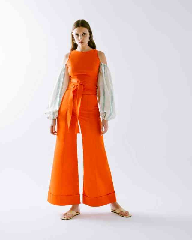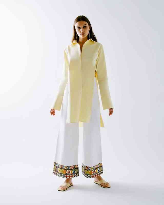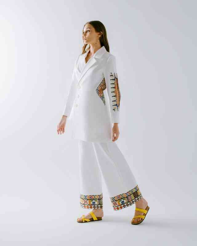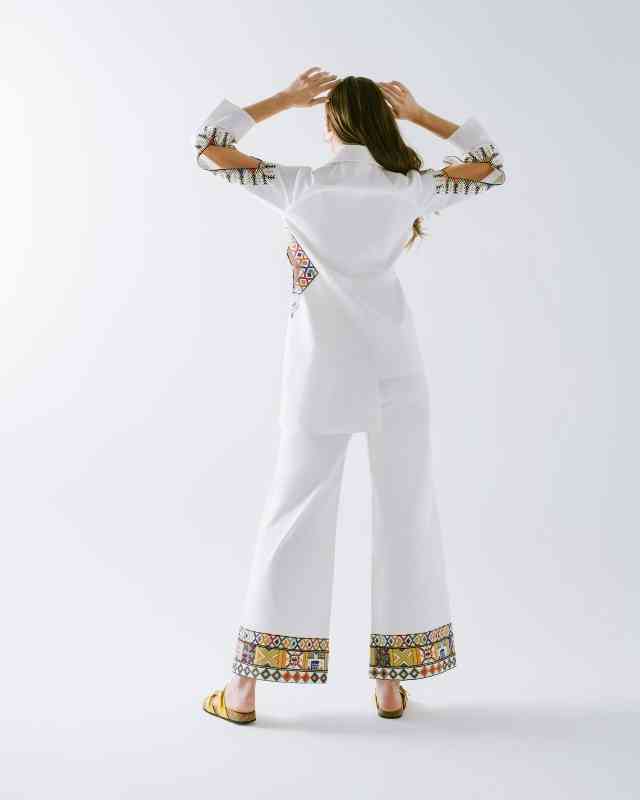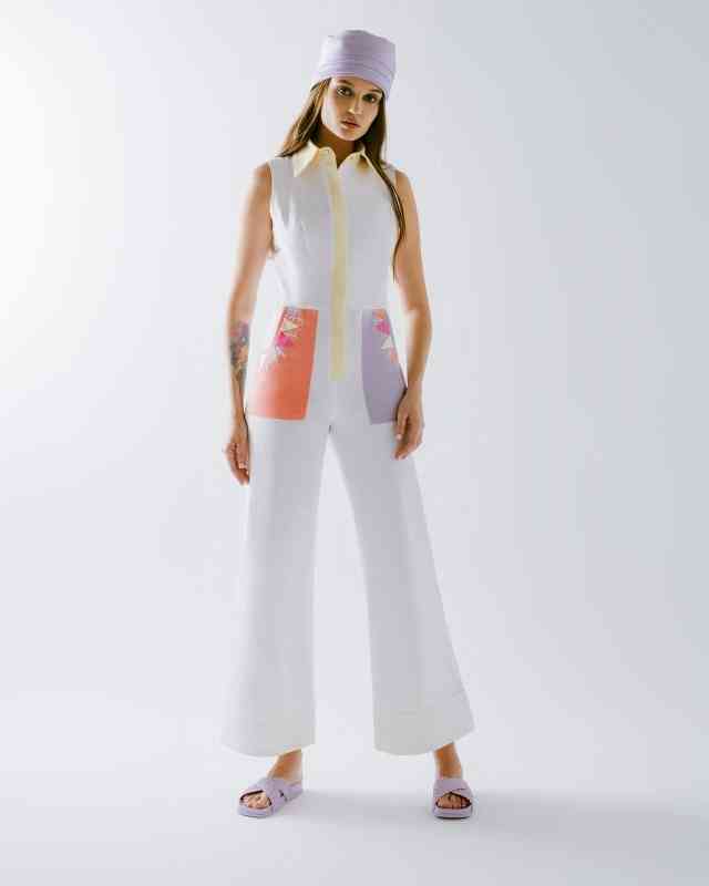 وأوضحت: ضمت المجموعة عدداً كبيراً من التنانير والكنزات وأزياء «الجمبسوت» والسراويل، إذ التنانير البيضاء بلونها المشرق وتفاصيلها الانسيابية، وتظهر تنانير أخرى من خلال التدرجات الجريئة للأزرق والبرتقالي والبنفسجي والأخضر الليموني، وذكرت: تتميز السراويل الطويلة بتصميمها الضيّق عند الركبتين والذي يتّسع نحو الأسفل بقصّات متنوعة وتقليمات هندسية تتناغم مع الأنماط الكلاسيكية، وبينت أن القطع العلوية جاءت في مجموعتين، الأولى بقصة ضيقة عند الخصر تتسع نحو الأسفل، والثانية بتصاميم فضفاضة مع تفاصيل مكشوفة بسيطة، وتبرز بدلات الجمبسوت بياقات مميزة بألوان تتباين مع القطعة، إضافة إلى جيوب تعكس الجوهر المرح.