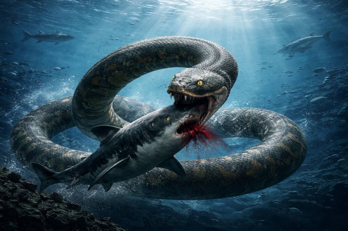 أكبر ثعبان بحري في التاريخ.. طوله 12 متراً ويفترس القروش