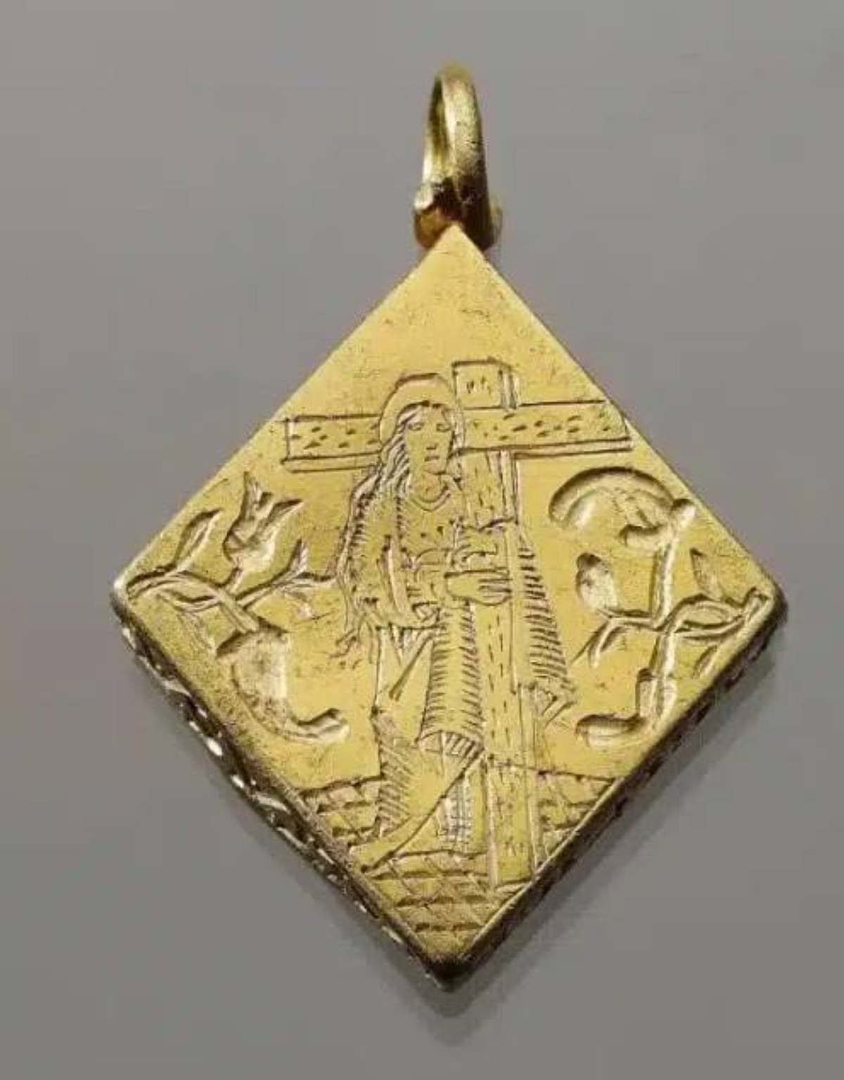 هذه القطعة الأثرية، الموجودة حالياً في المتحف البريطاني ، عبارة عن قلادة دينية نادرة من القرن السادس عشر، كانت مدفونة على بعد بوصات قليلة من سطح الأرض، دون الحاجة إلى خريطة كنز وفق ديلي جالاكسي.