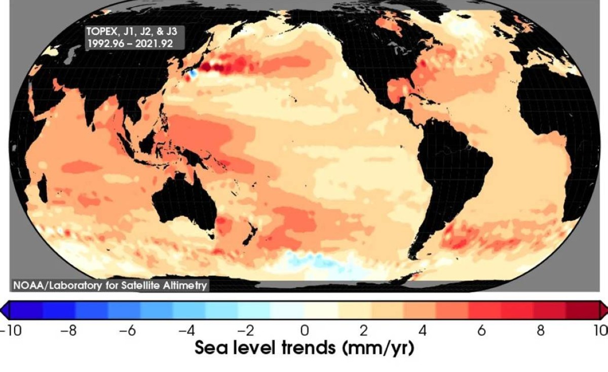 كل هذا يؤكد أن سطح المحيط ليس مسطحاً على الإطلاق، إذ تتفاوت مستويات سطح البحر بما يصل إلى 3 أمتار (10 أقدام) في بعض الأماكن نتيجة لهذا المزيج المعقد من درجة الحرارة والملوحة والدوران والجاذبية.