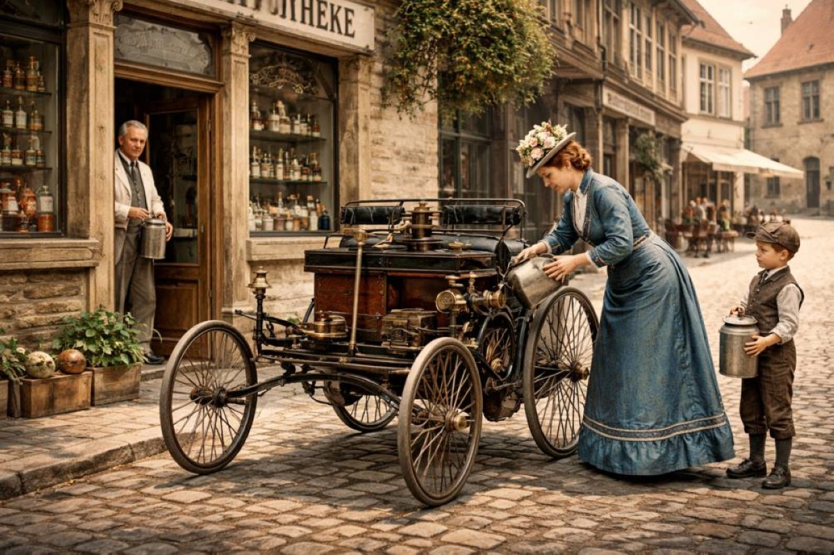 قبل أكثر من قرن، لم تكن السيارات جزءا من الحياة اليومية كما هي اليوم، ولم تكن البنية التحتية للسفر بالسيارة، مثل الطرق السريعة وورش الصيانة، متاحة بعد، وحتى محطات الوقود، التي أصبحت اليوم متواجدة على كل زاوية، لم تكن موجودة، ما جعل السائقين الأوائل يلجأون إلى حلول مبتكرة لتزويد سياراتهم بالوقود.