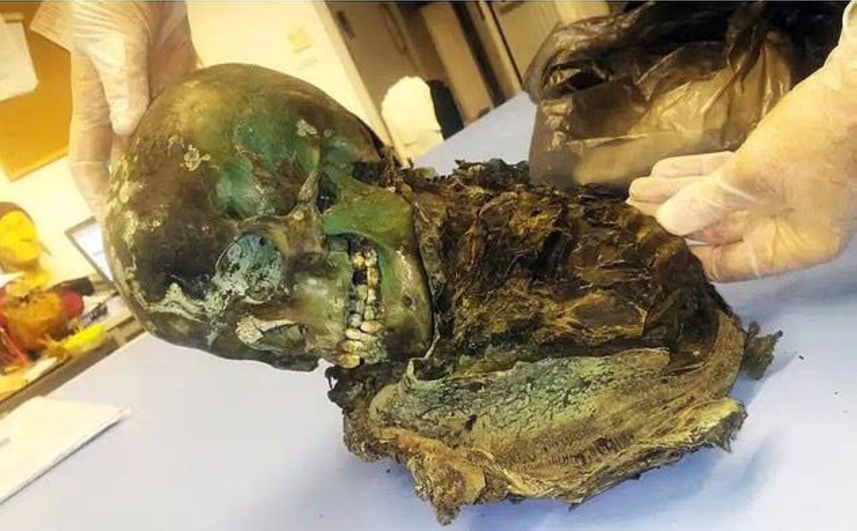 أظهرت الدراسات الحديثة أن صندوق النحاس الذي دفن فيه الصبي كان المفتاح وراء هذا اللون الغريب. فالمعدن لا يحافظ على الأنسجة الصلبة واللينة فحسب، بفضل خصائصه المضادة للبكتيريا، بل يتفاعل أيضًا مع الأحماض التي تفرزها الجثة، مما يؤدي إلى تآكل الصندوق وخلق مركبات كيميائية تفاعلت مع العظام والأنسجة، وفقا لصحيفة "ديلي ميل" البريطانية.