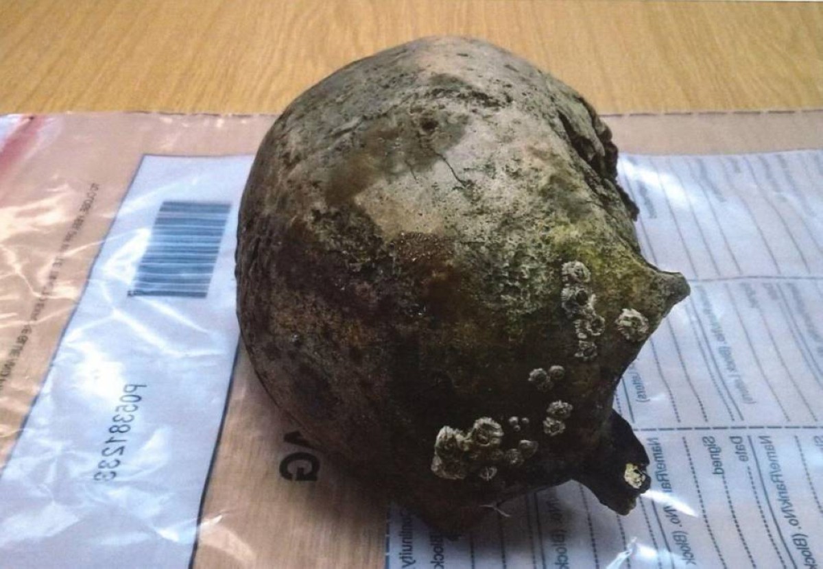 تم نقل القطعة الغريبة لاحقا إلى مكتب الطبيب الشرعي المحلي، حيث كشفت الفحوصات الأولية أنها جمجمة بشرية، أي الجزء العلوي من رأس الإنسان، وبعد إجراء اختبار الكربون المشع، تبيّن أن الجمجمة تعود لشخص عاش في الفترة بين 800 قبل الميلاد و540 قبل الميلاد، في العصر الحديدي.