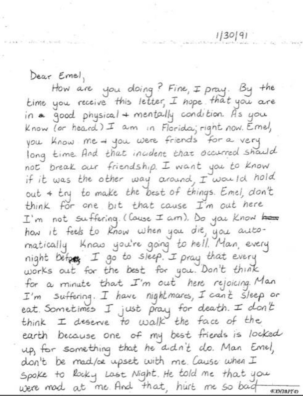بعد اعتقاله بثلاثة أشهر، وبينما كان محتجزًا في سجن جزيرة رايكرز، تلقى ماكدويل رسالة صادمة: رسالة بخط اليد من الصديق نفسه، يعبر فيها عن عذابه النفسي، ويؤكد ضمنياً مسؤوليته عن إطلاق النار، ويطلب الحفاظ على سرية المراسلات. اعتقد ماكدويل أن الرسالة ستكون مفتاح براءته، فسلمها لمحاميه، لكنه صُدم عندما لم تُستخدم كدليل، ولم تُعرض على هيئة المحلفين.
